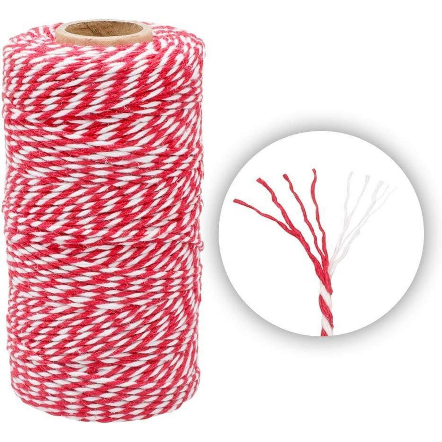 100m Rot und Weiß Baumwolle Bäckergarn Deko Schnur 2mm