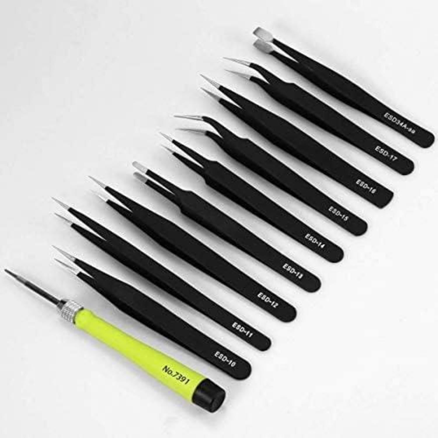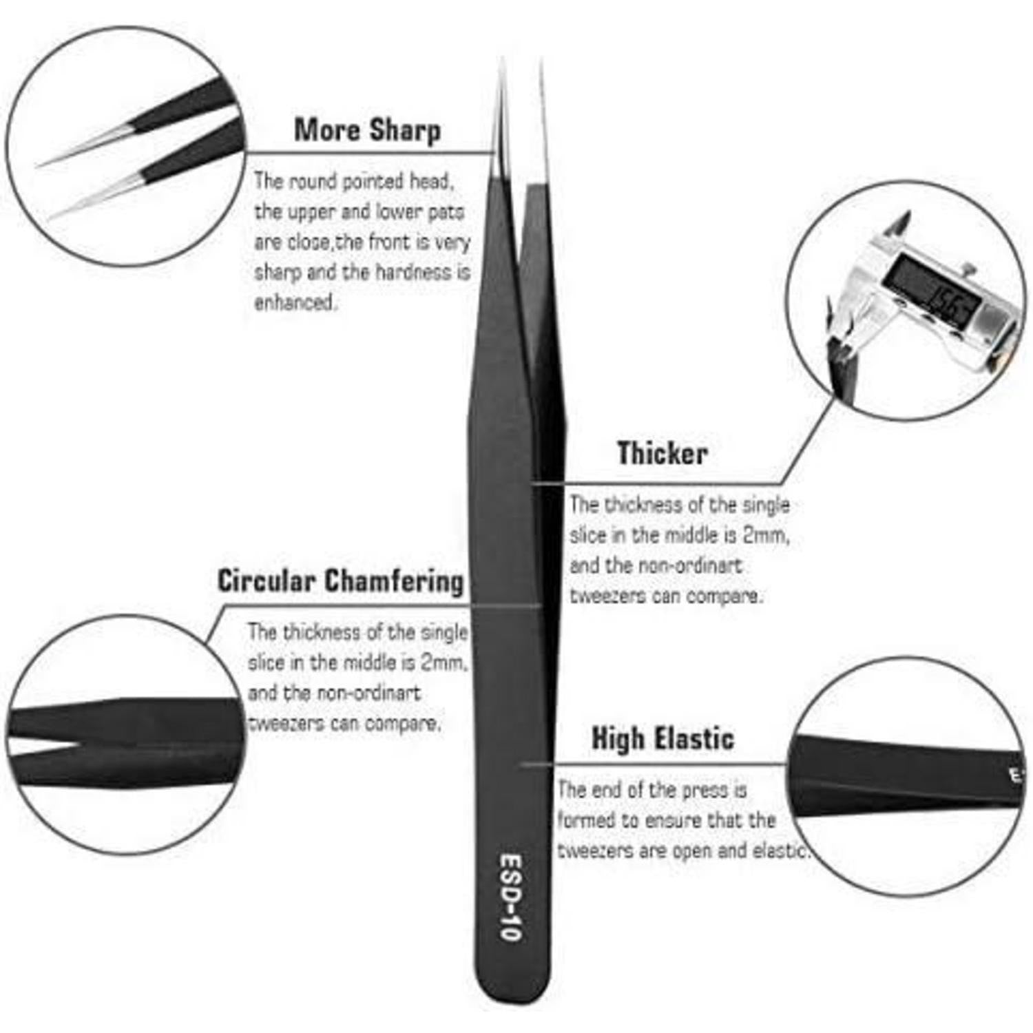 10PCS ESD Pinzetten Kit Präzisions Anti-Statik Edelstahl SET