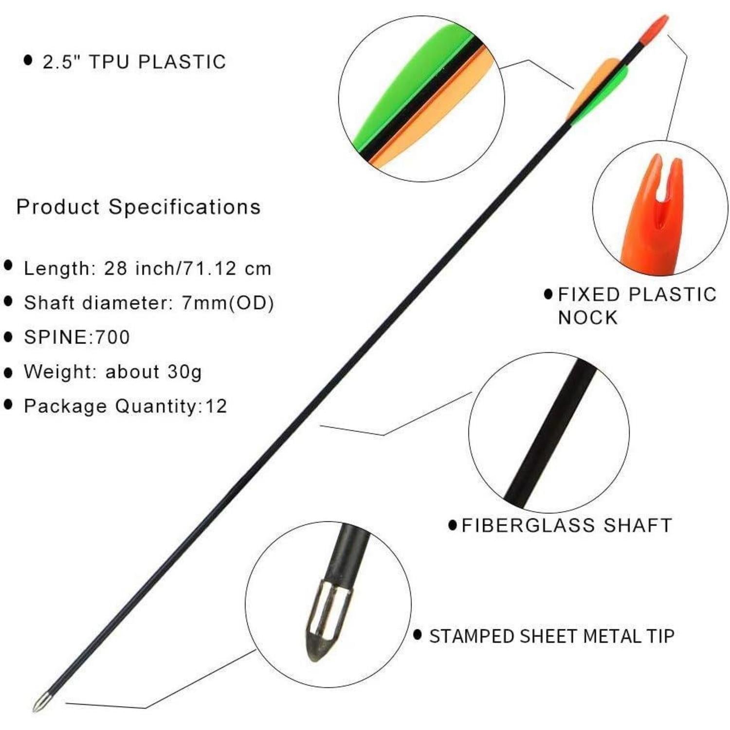 12x Fiberglaspfeile 28/26 Zoll für Bogenschießen