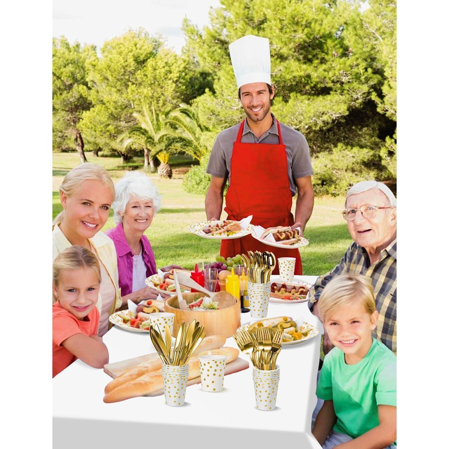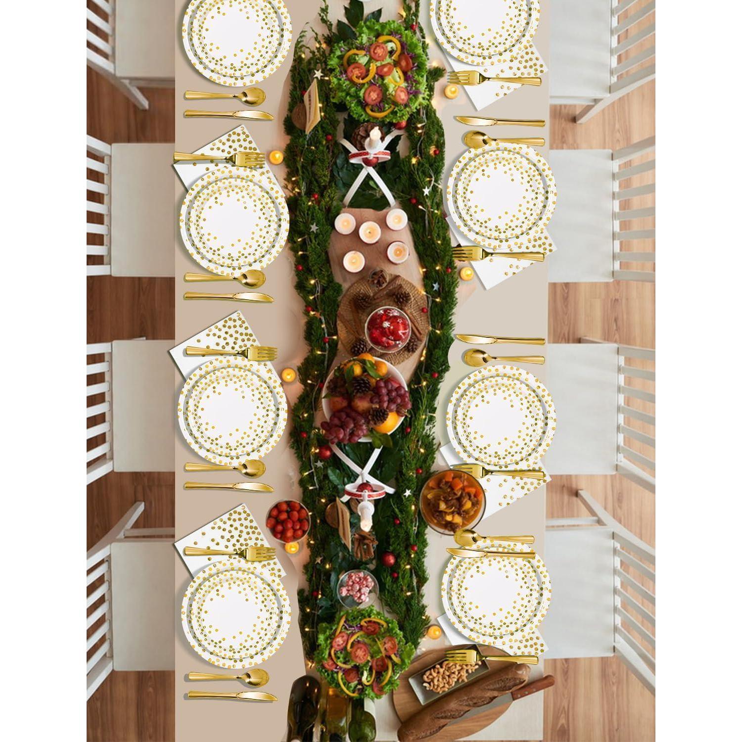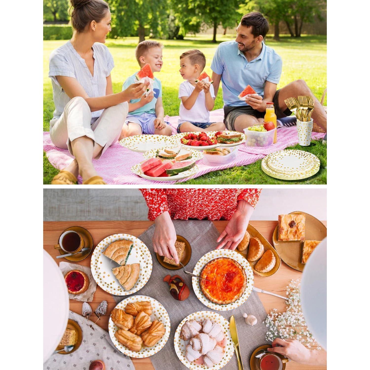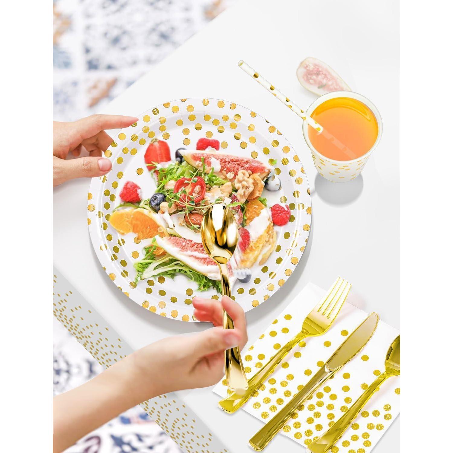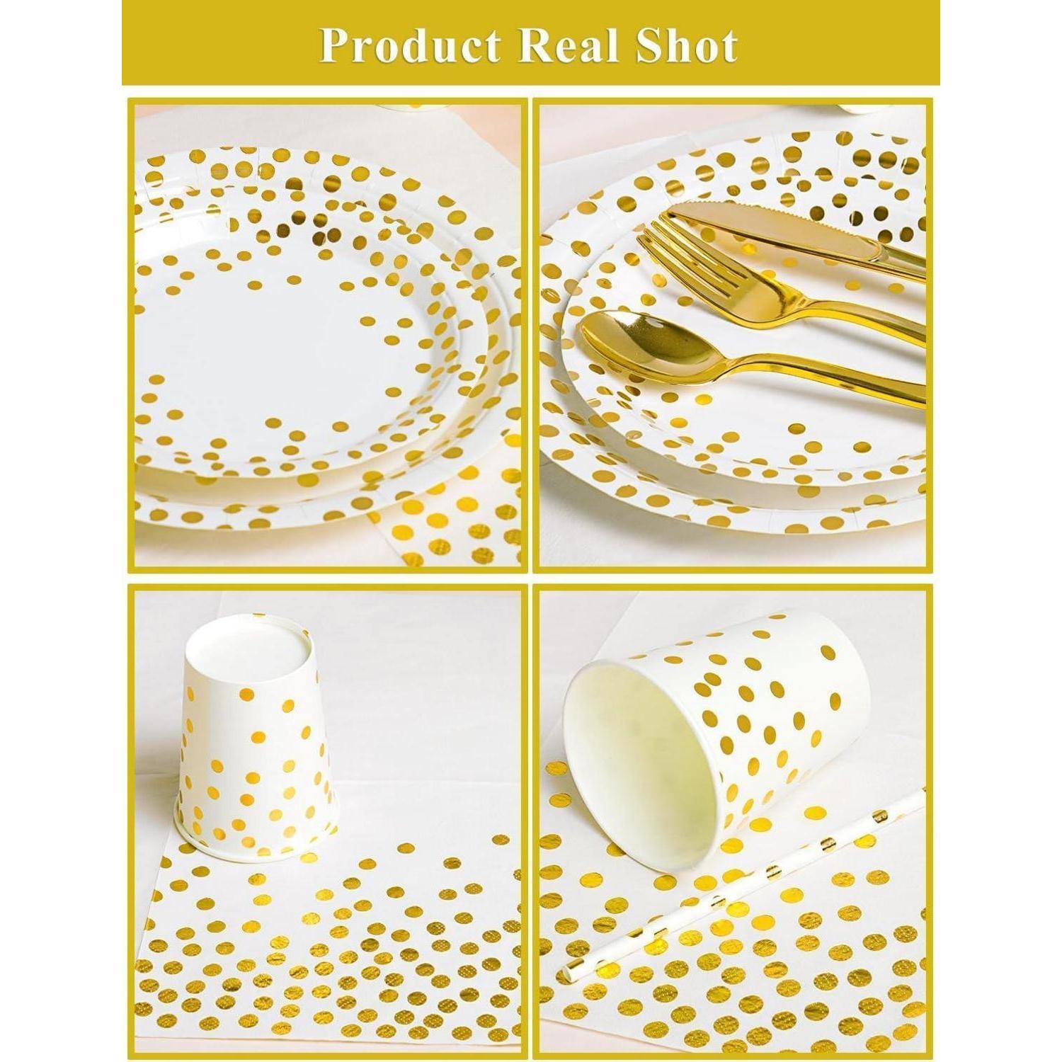 Goldenen Punkten-Design - Unser Partygeschirr besticht durch das elegante Design mit goldenen Punkten, das Aufmerksamkeit erregt und Ihrem Bankett mehr Geschmack verleiht.