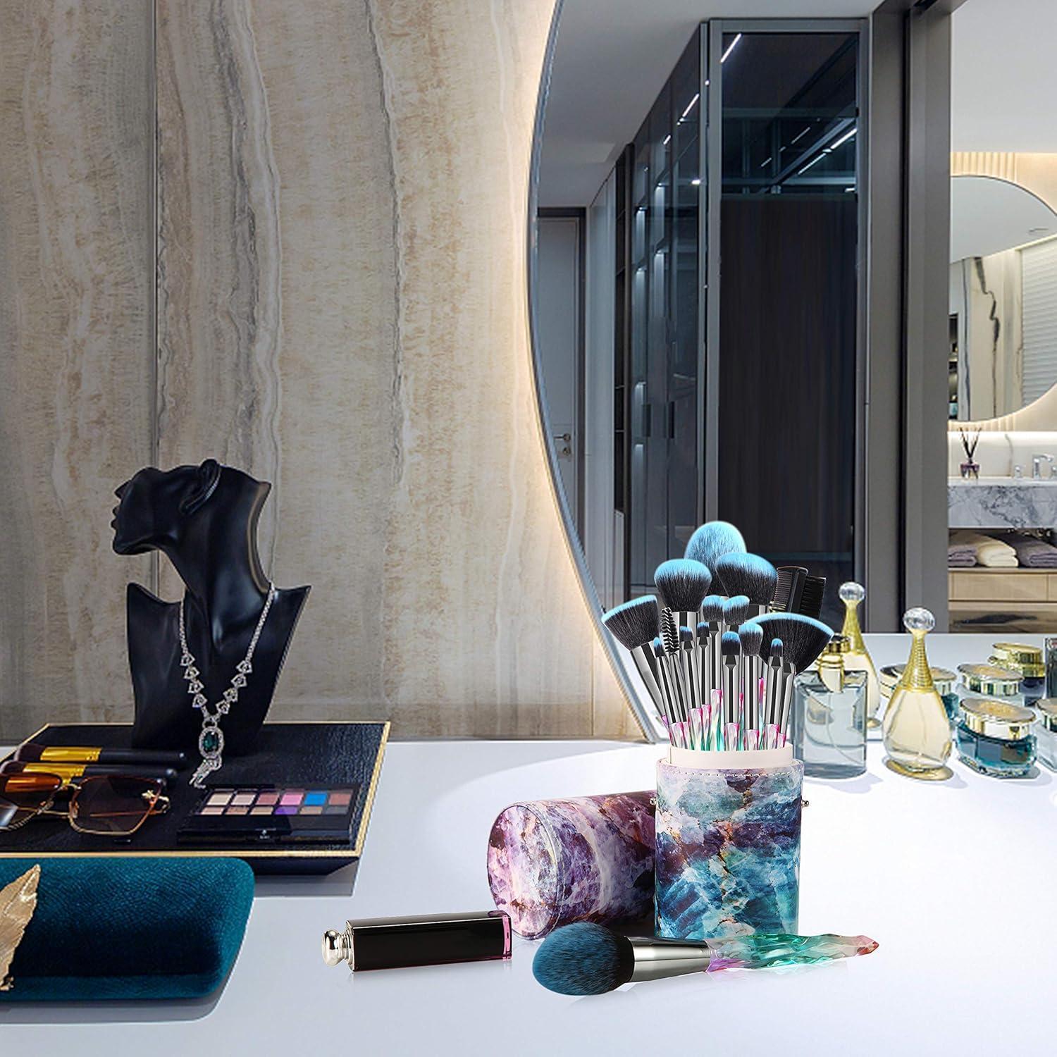 ????Einzigartige Kristalloberfläche mit Farbverlauf: Der transparente, kontrastierende Make-up-Pinselgriff sieht aus wie ein Edelstein, er funkelt unter Sonnenlicht oder hellem Licht; Sie werden sich sehr robust fühlen, wenn Sie diese unregelmäßigen Griffe halten.