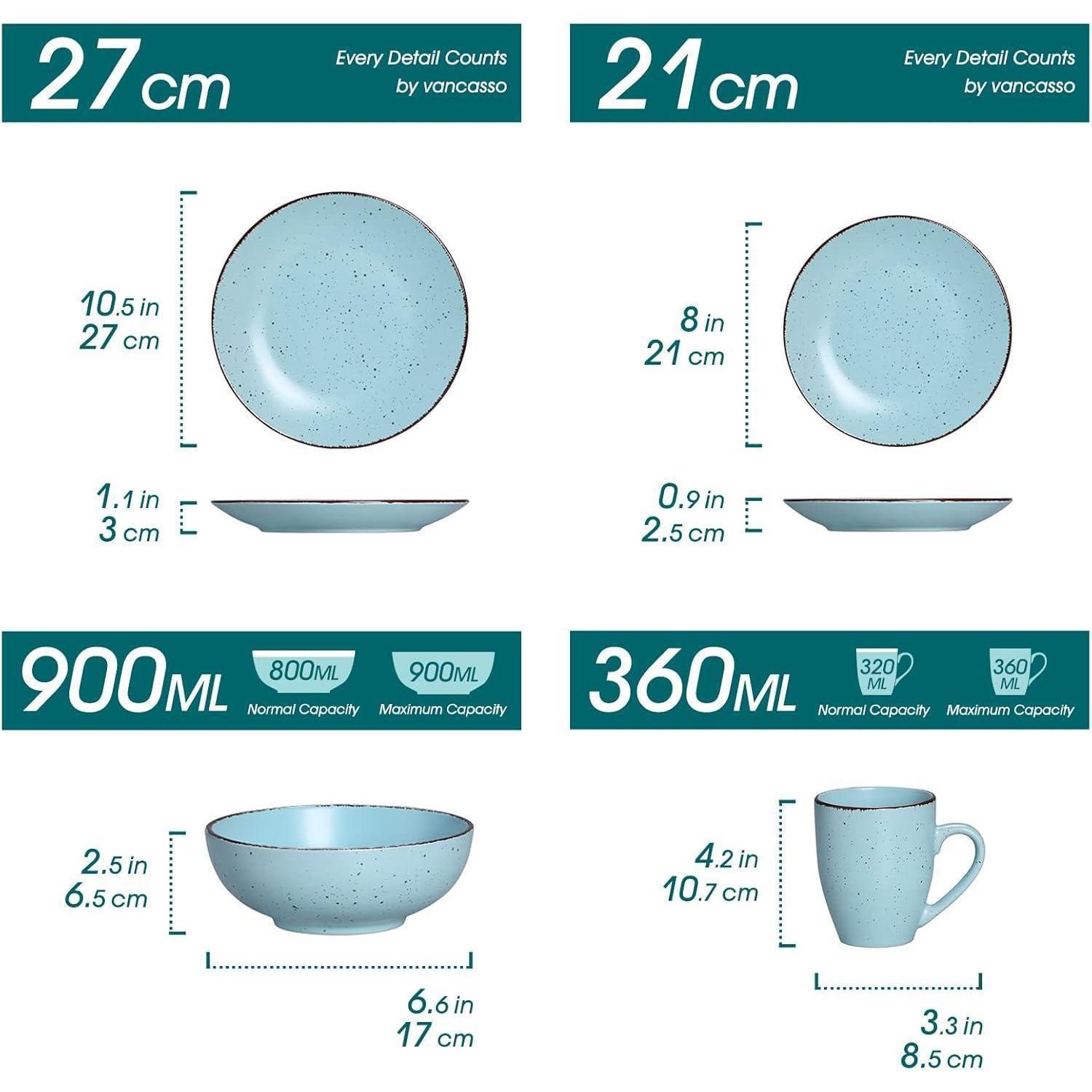 16-teiliges Tafelservice Steingut Vintage Blau, vancasso