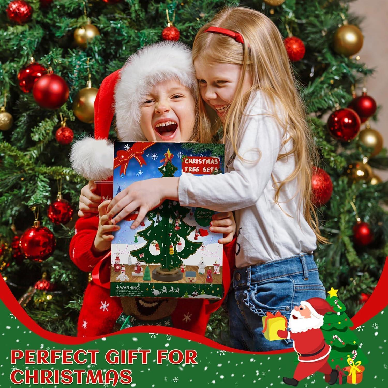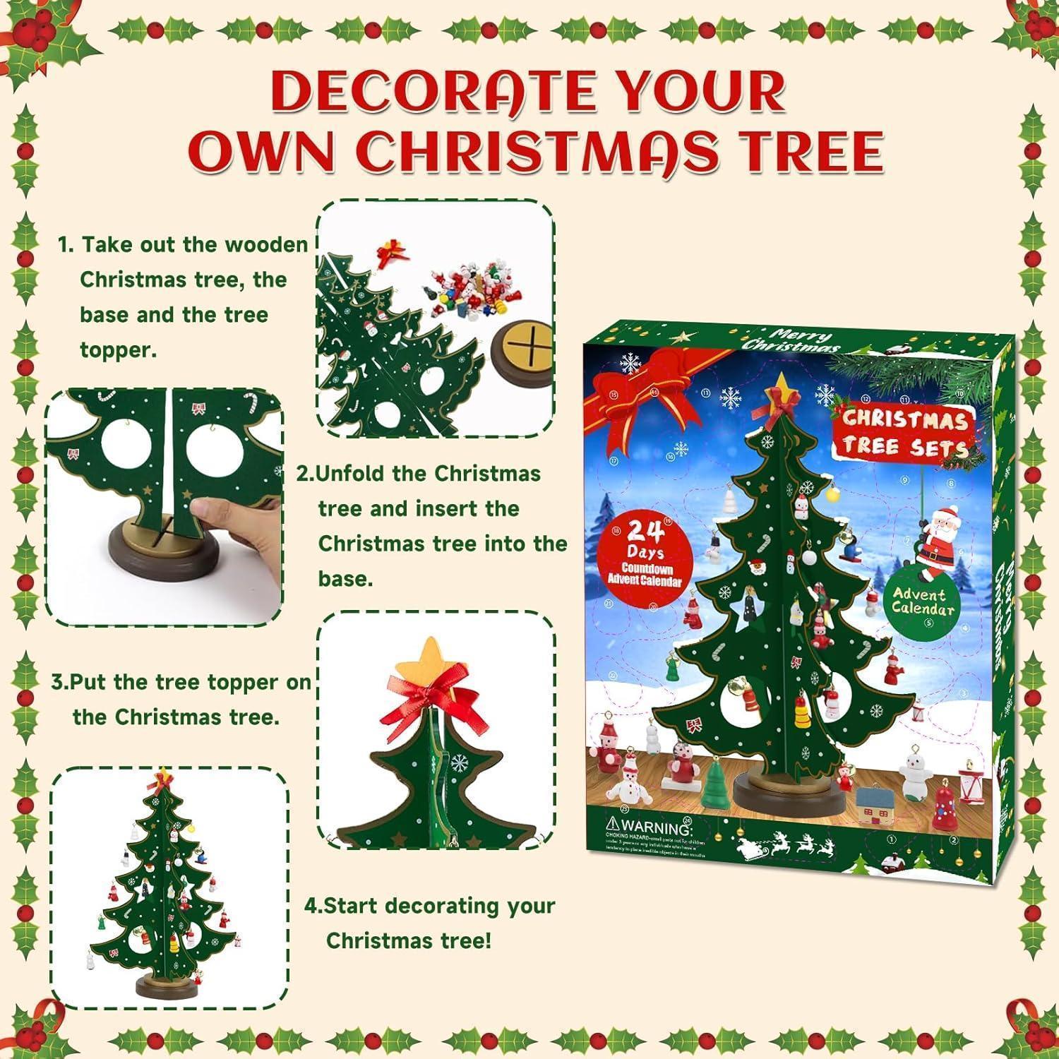 Perfekter Adventskalender für Kinder und Erwachsene - Dieser 2024 Adventskalender bietet 24 Tage voller Vorfreude mit einem liebevoll gestalteten Tisch-Weihnachtsbaum und 35 dekorativen Ornamenten.