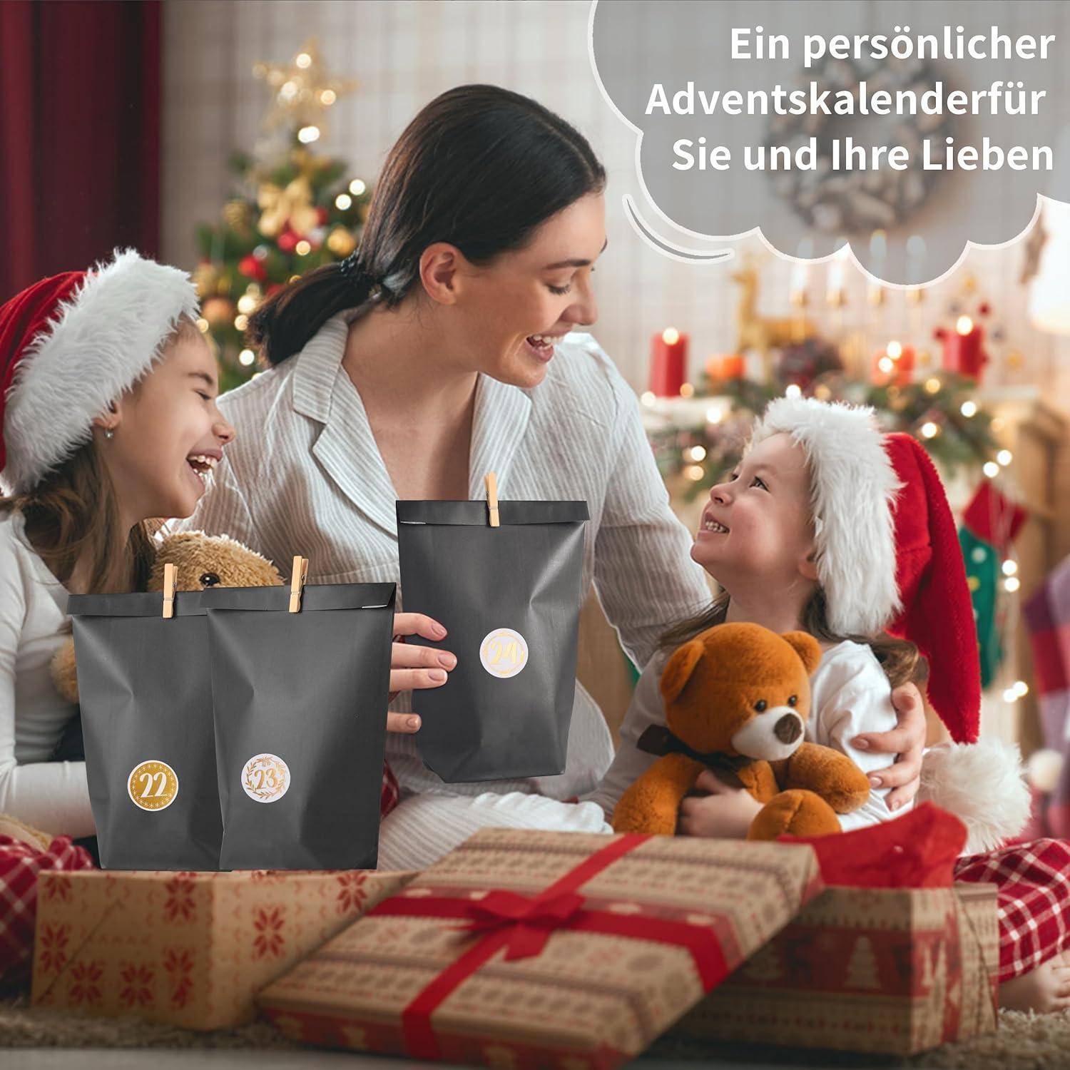 Mit einer Größe von 25,6*16,8 cm bieten die Geschenktüten ausreichend Platz für verschiedene Inhalte. Die Mini-Holzwäscheklammern sorgen dafür, dass die Geheimnisse der Füllung bewahrt bleiben und sorgen für eine besondere Überraschung jeden Tag im Advent.