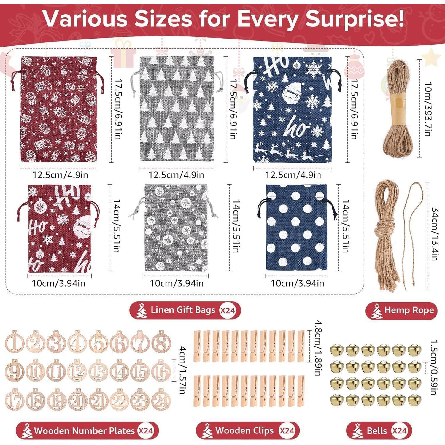 24 Adventskalender Stoffsäckchen DIY Weihnachtskalender