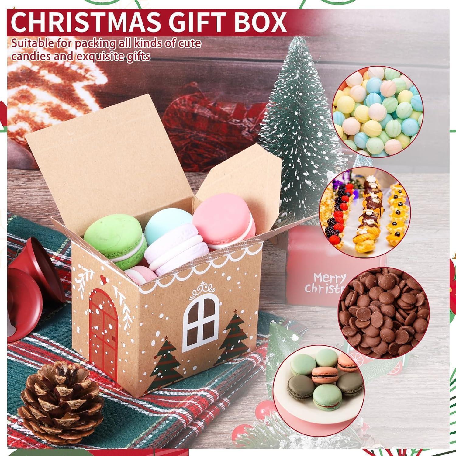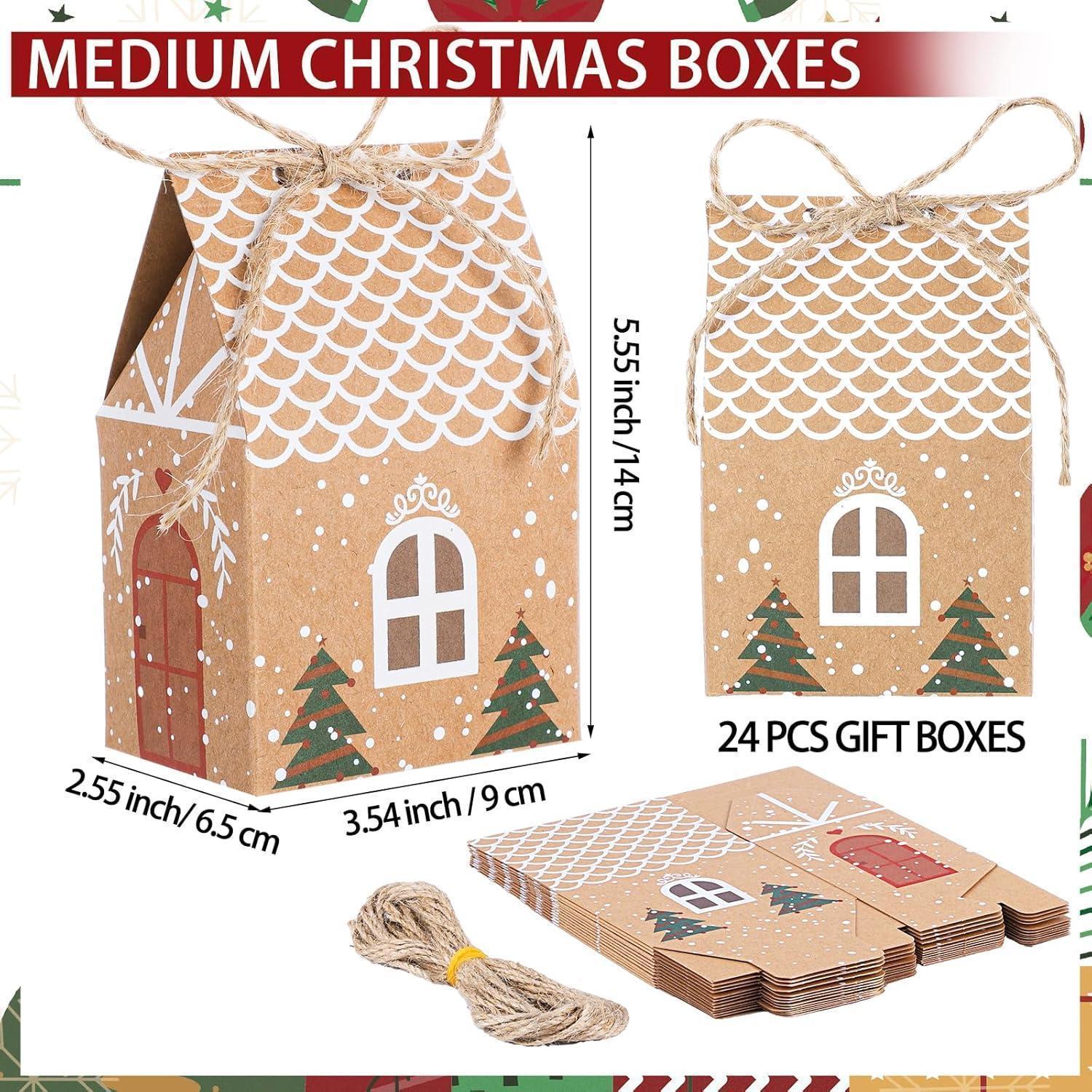 24er Weihnachts-Geschenkboxen Kraftpapier Häuschen