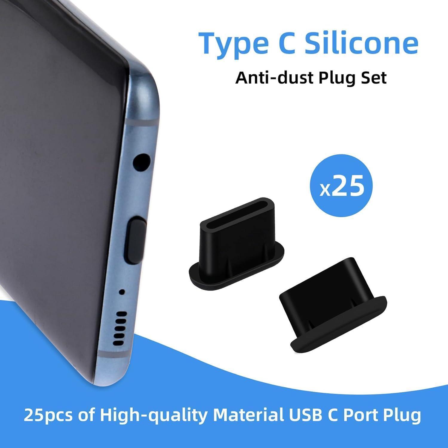 25 Stk Silikon USB C Staubschutz Schwarz Handy Ladeanschluss