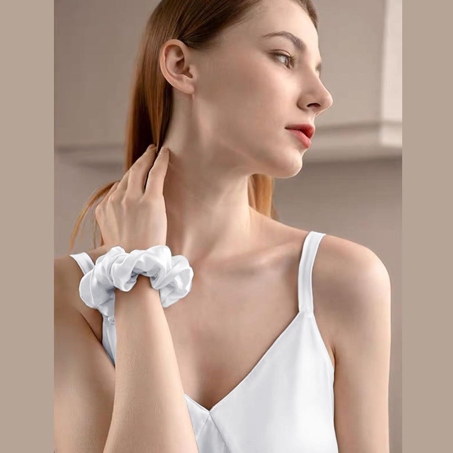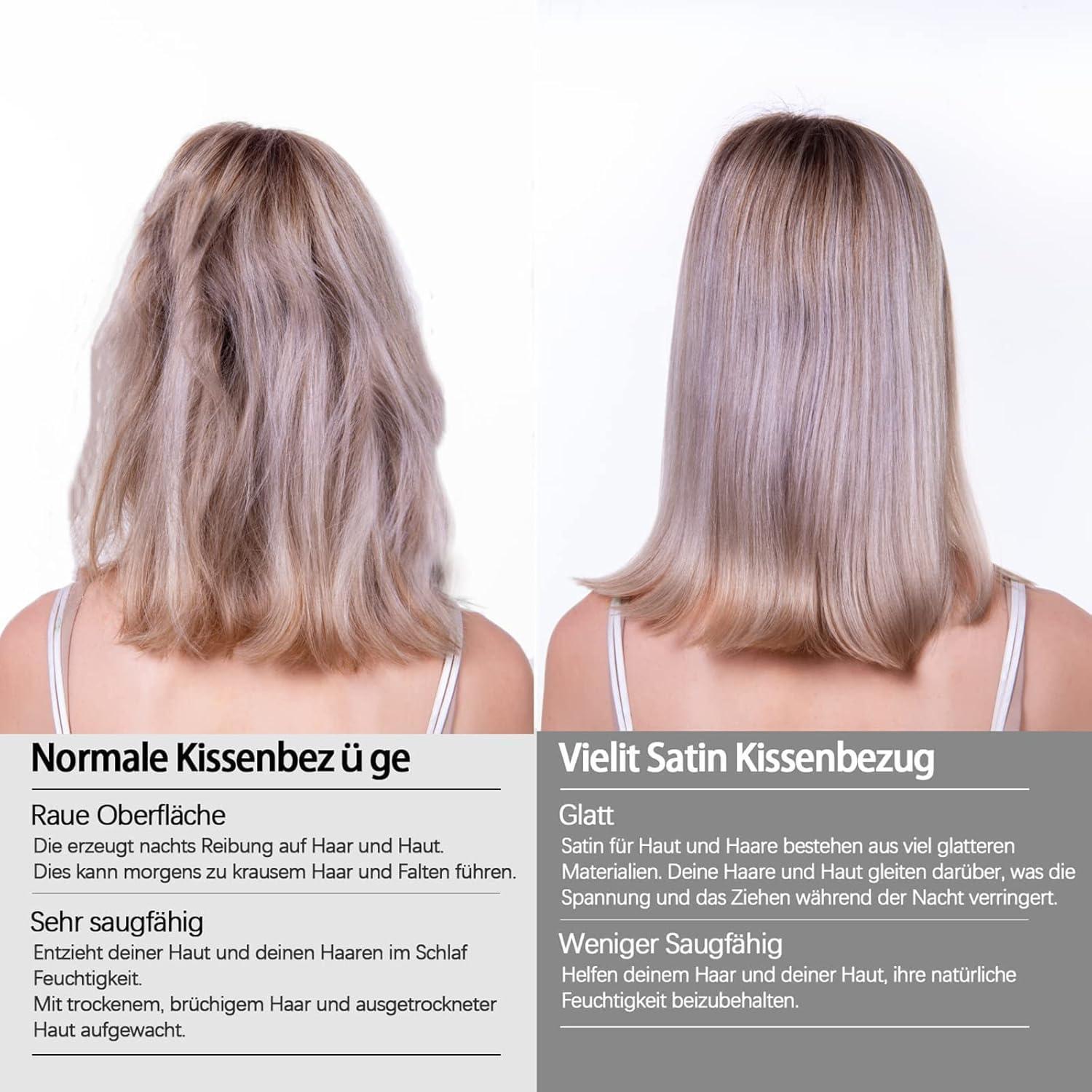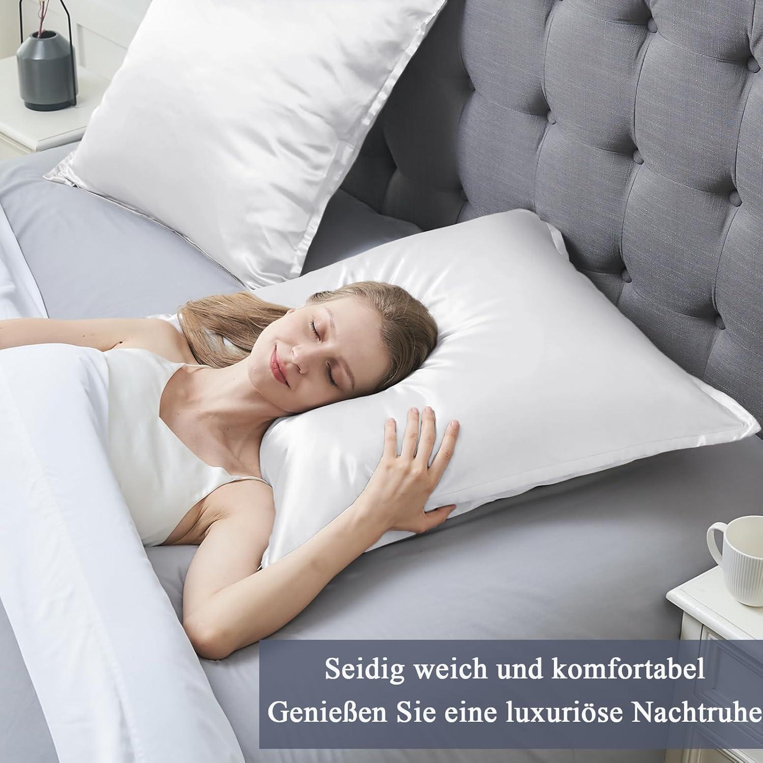 2er Set Satin Kissenbezug 65x65 Weiß mit Haargummis