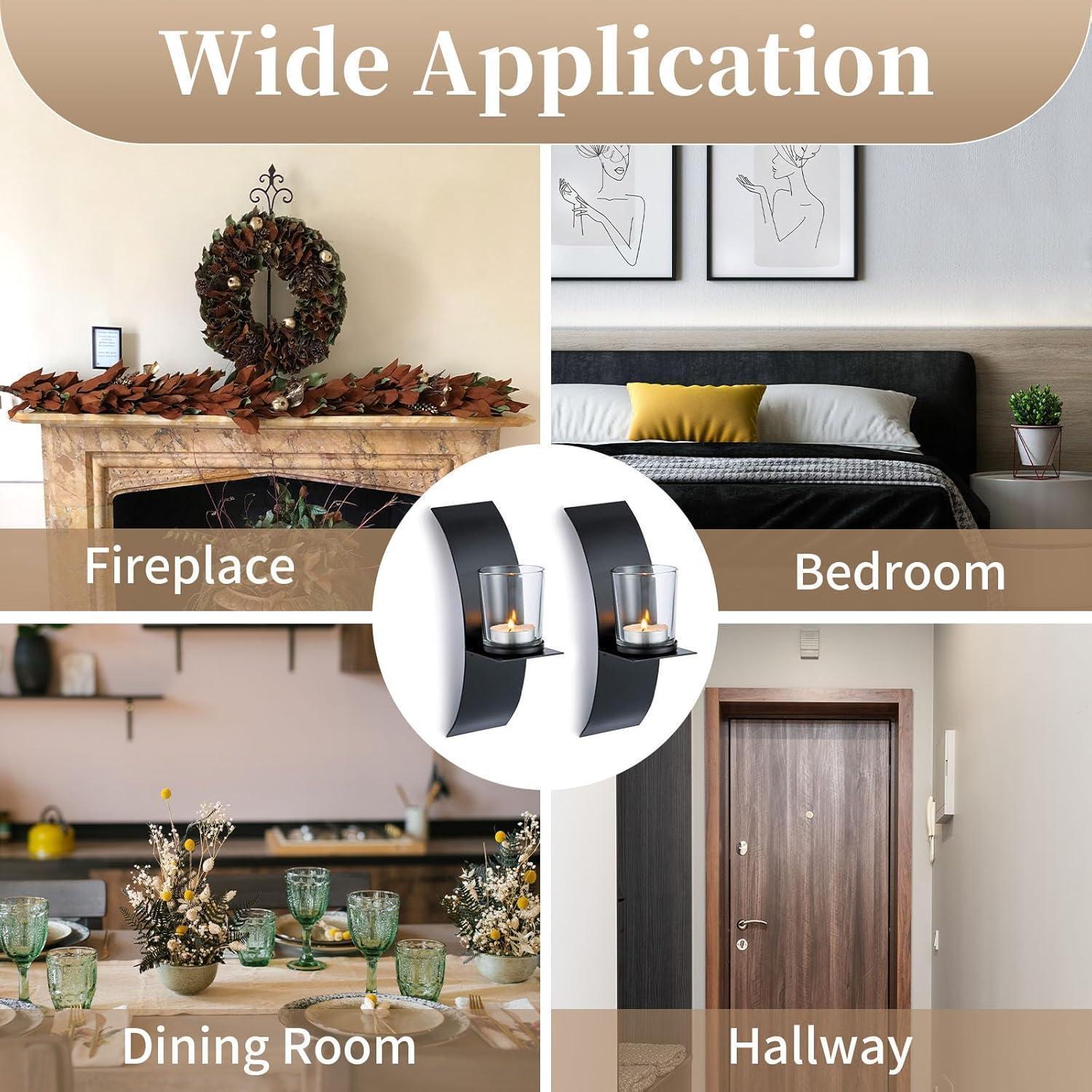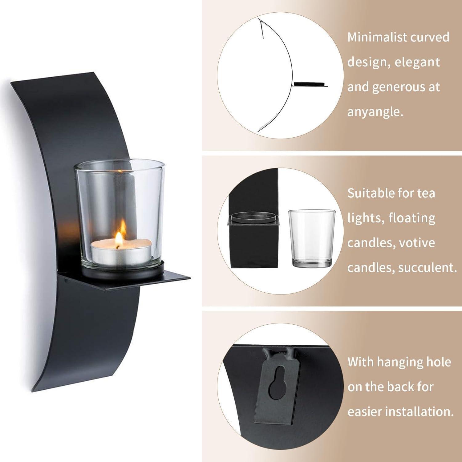 2er Set Wand Kerzenhalter Schwarz Metall Teelichthalter
