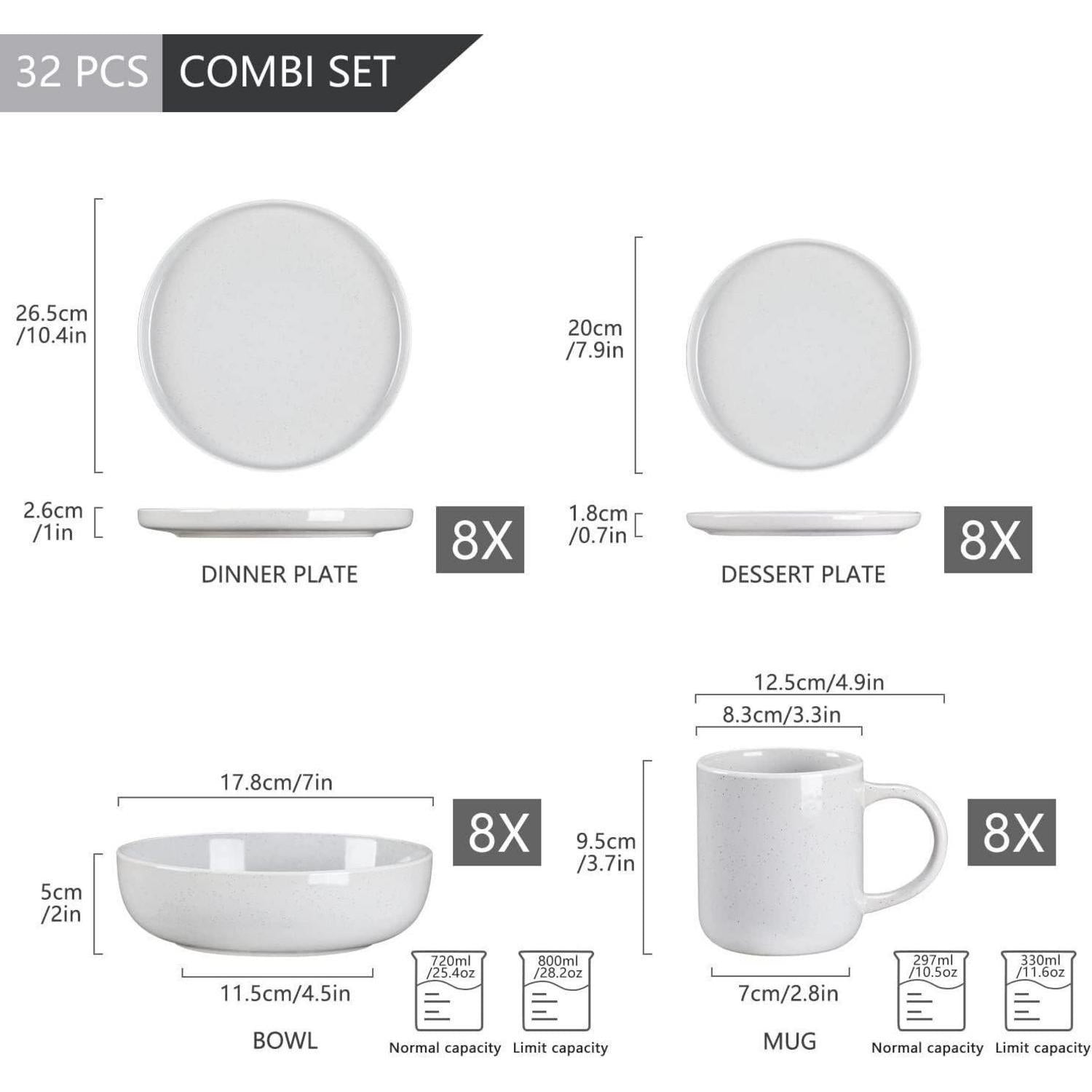 Tafelservice - Komplettes 32-teiliges Kombiservice Set für 4-12 Personen