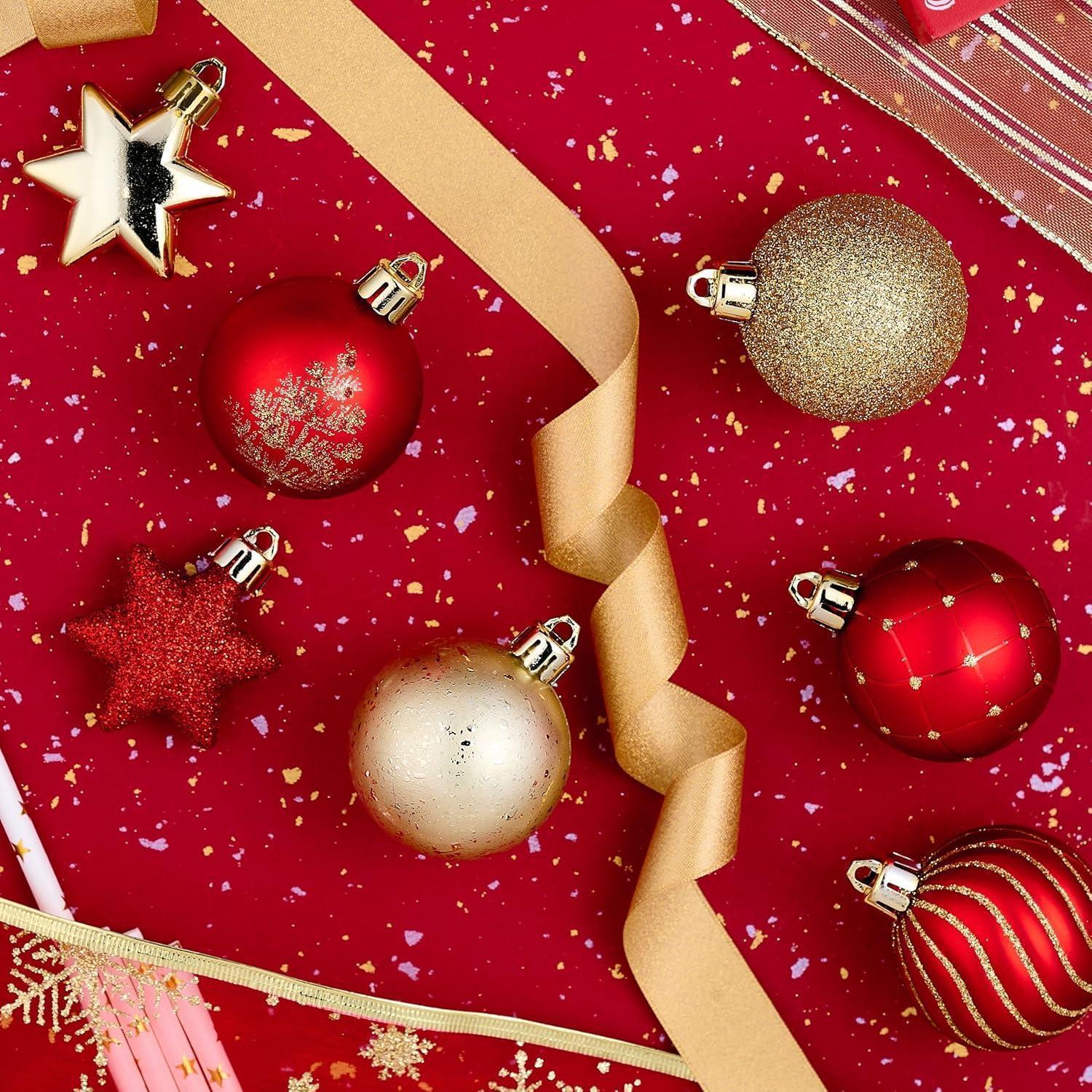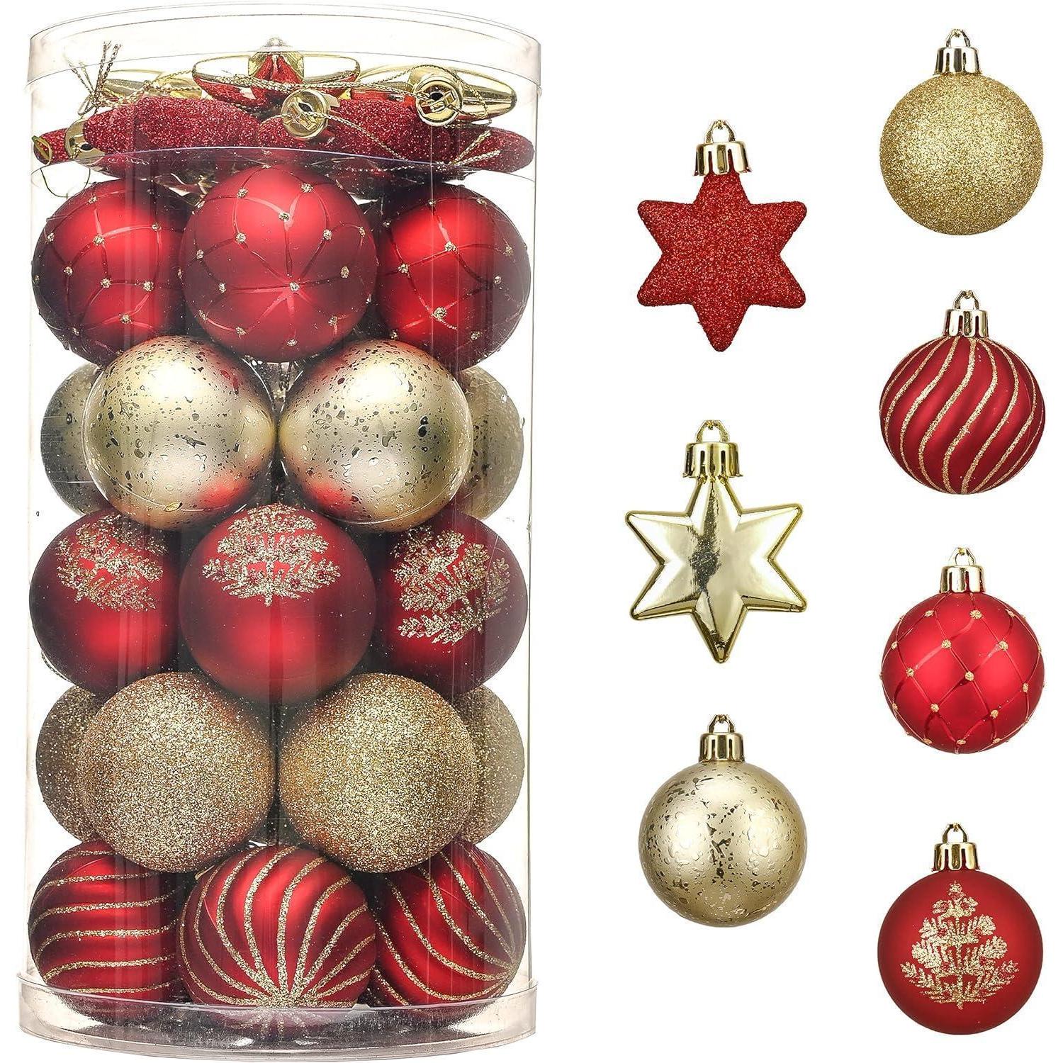 35er Set Weihnachtskugeln 5cm Kunststoff Rot Gold Luxus Stil
