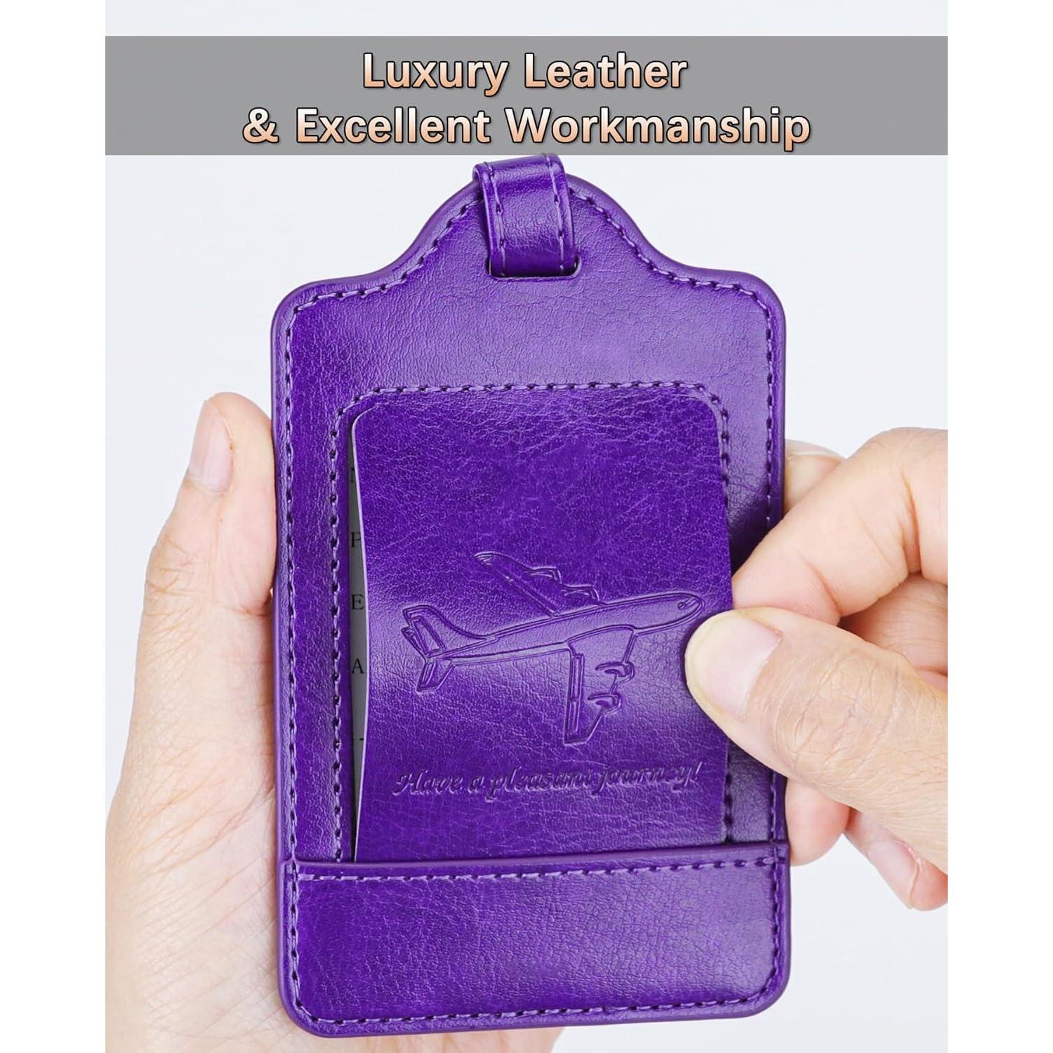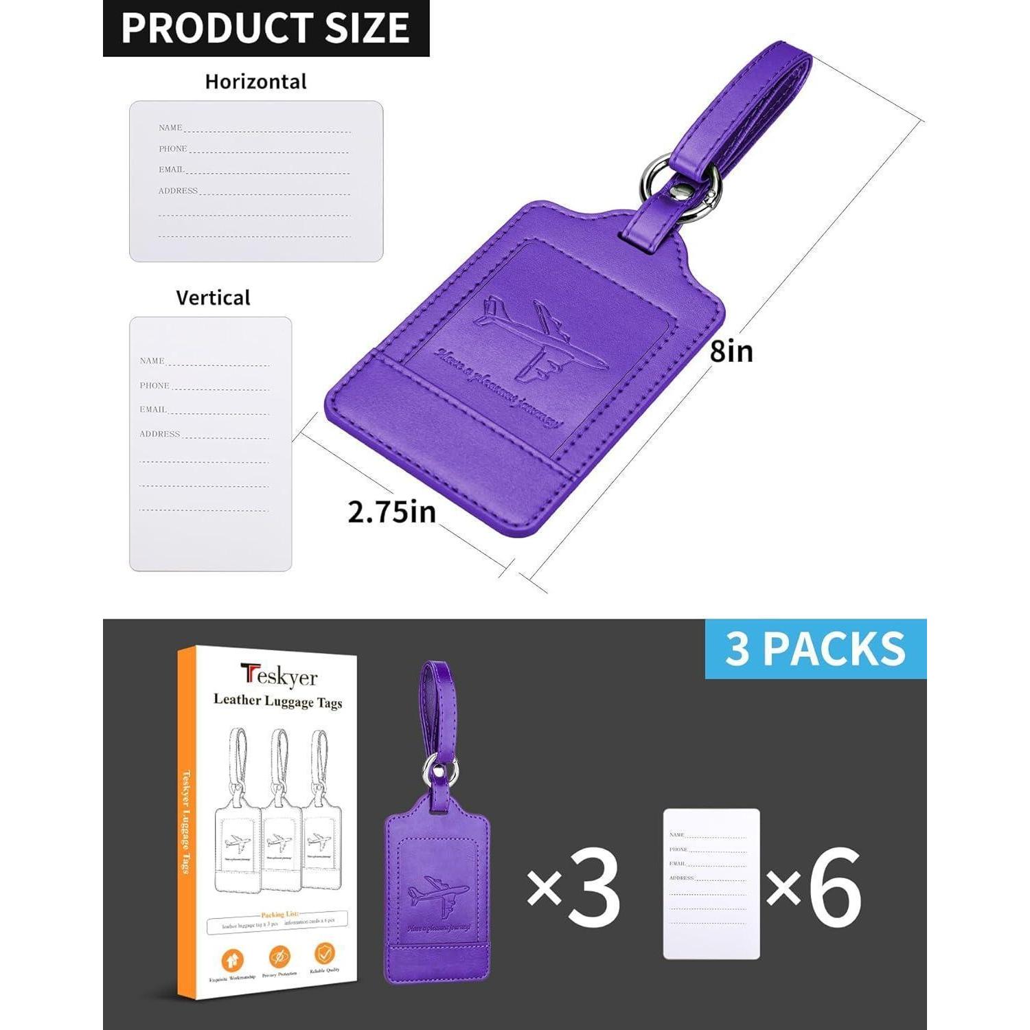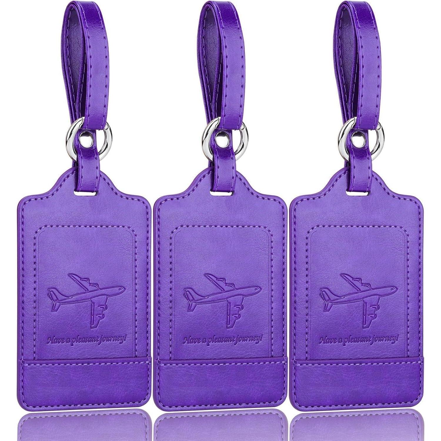 3er Teskyer Kofferanhänger Set Adressschild PU Leder Violett