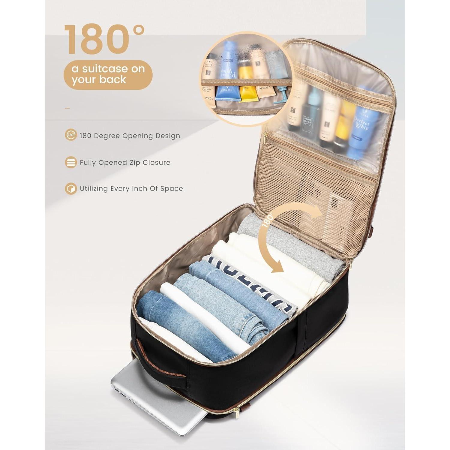 180°-Öffnung & mehrere Fächer: Das Koffer-ähnliche Design ermöglicht eine 180°-Öffnung, was die Sicherheitskontrolle und den Zugriff erleichtert. Das Design mit mehreren Fächern bietet separate Bereiche für trockene und nasse Gegenstände sowie Laptop- und iPad-Fächer. Es bietet Platz für einen 17,3-Zoll-Laptop und ein 12,9-Zoll-iPad.