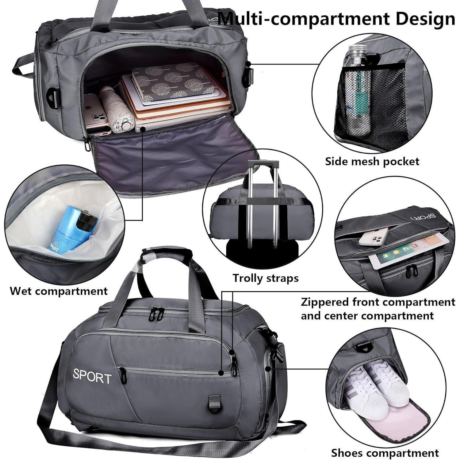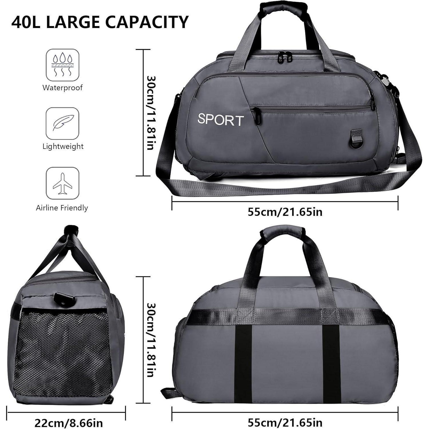 40L Sporttasche Wasserdicht Reisetasche Schuhfach Nassfach Rucksackfunktion