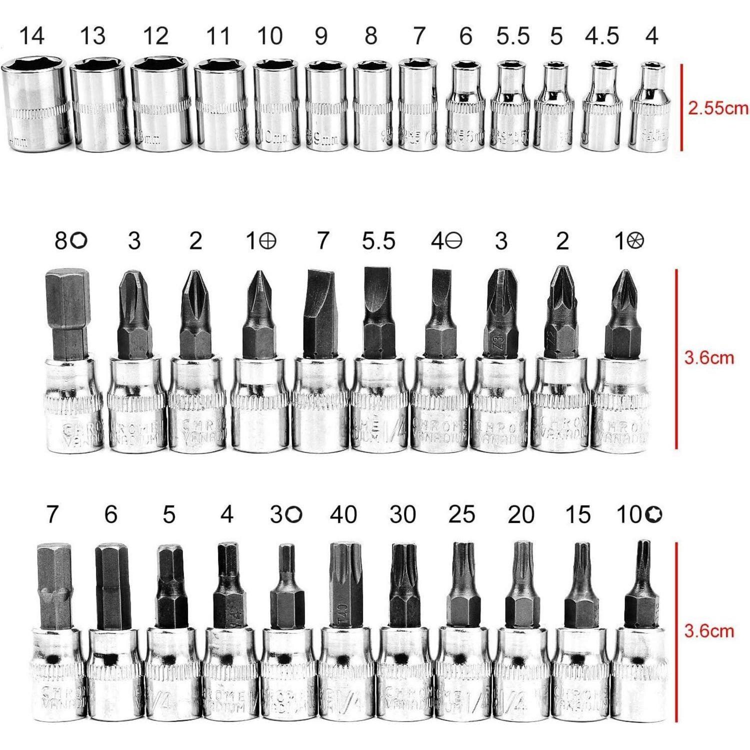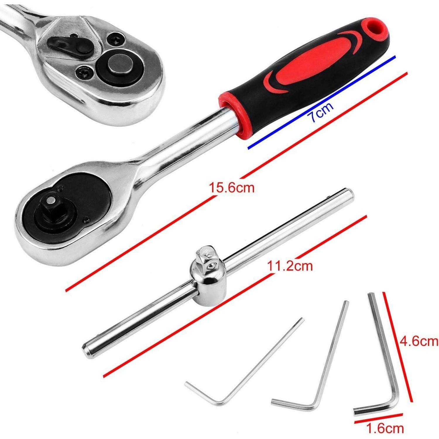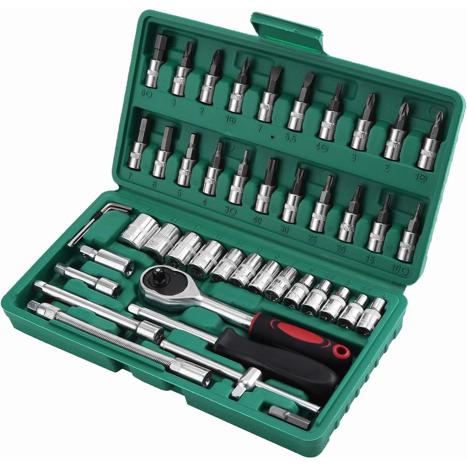 46-teiliger Steckschlüsselsatz 1/4 Zoll Drive Quick-Release Ratsche Auto Fahrrad