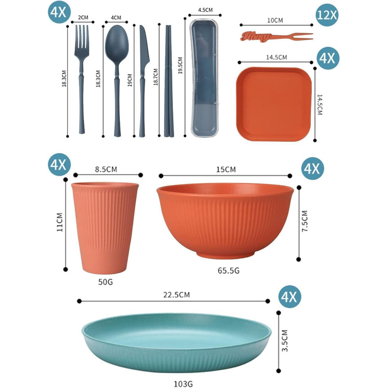 Leichte Geschirrsets - 48-teiliges Set für 4 Personen, inklusive Teller, Schüsseln, Becher, Besteck und mehr.