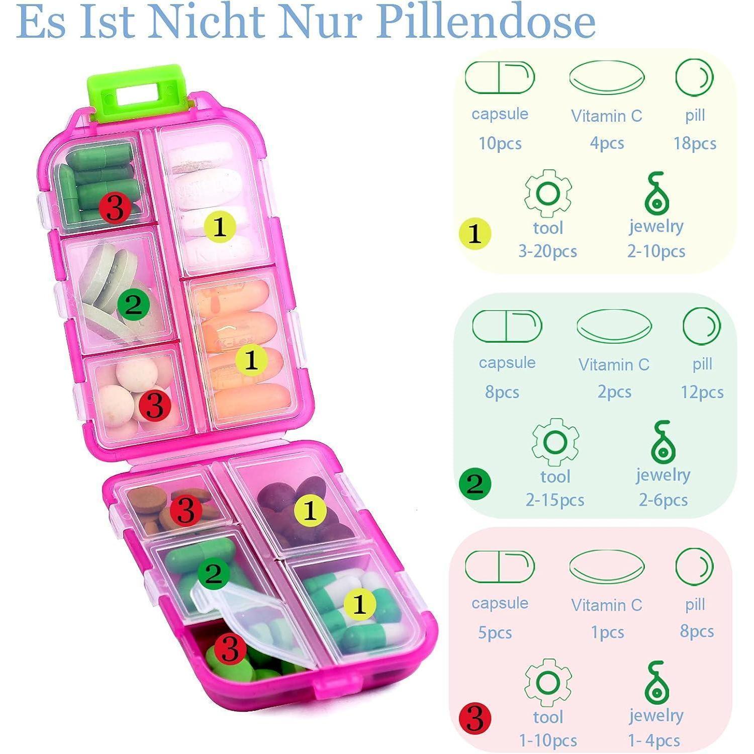 4er Pack Tablettenbox 7 Tage, Pillendose 10 Fächer Handlich
