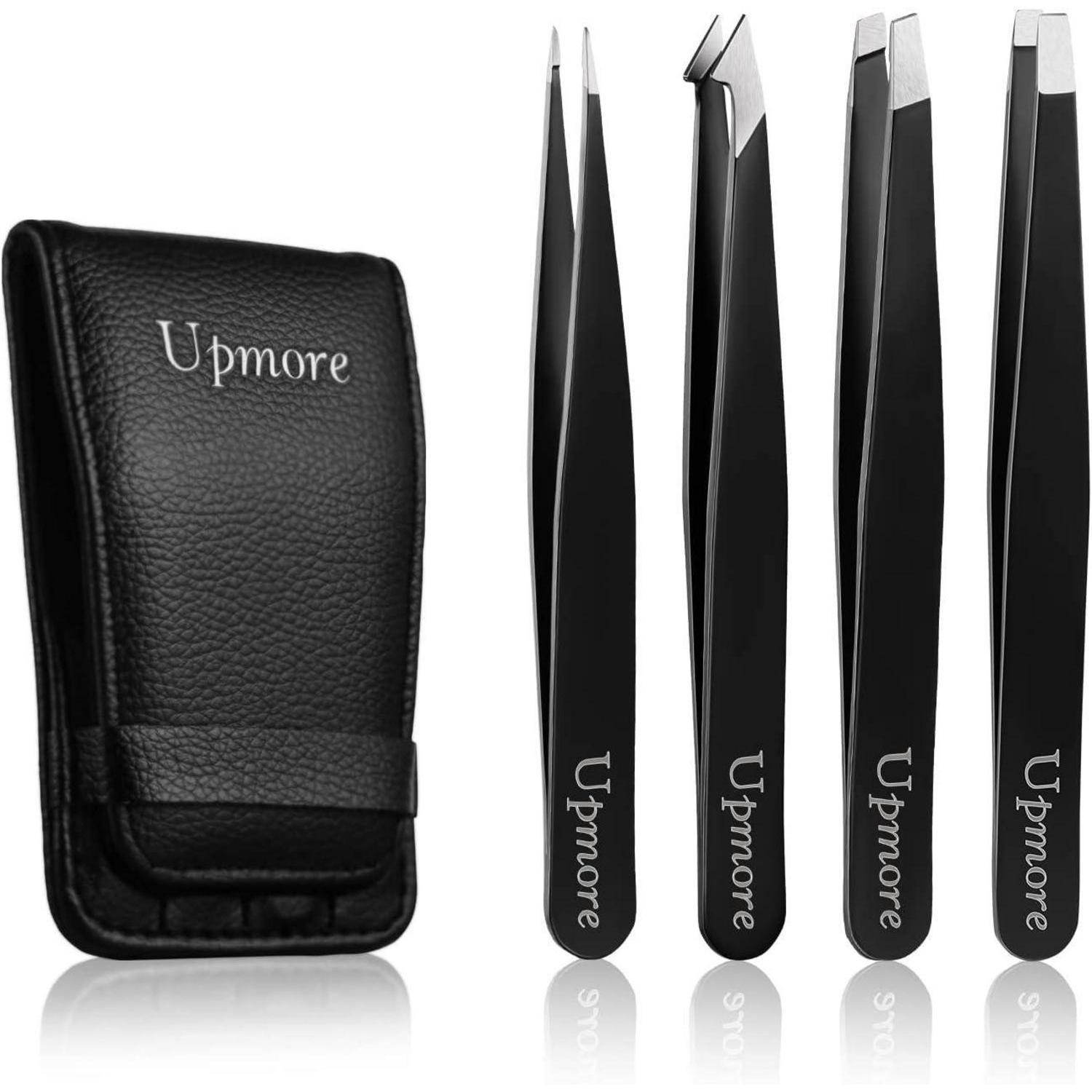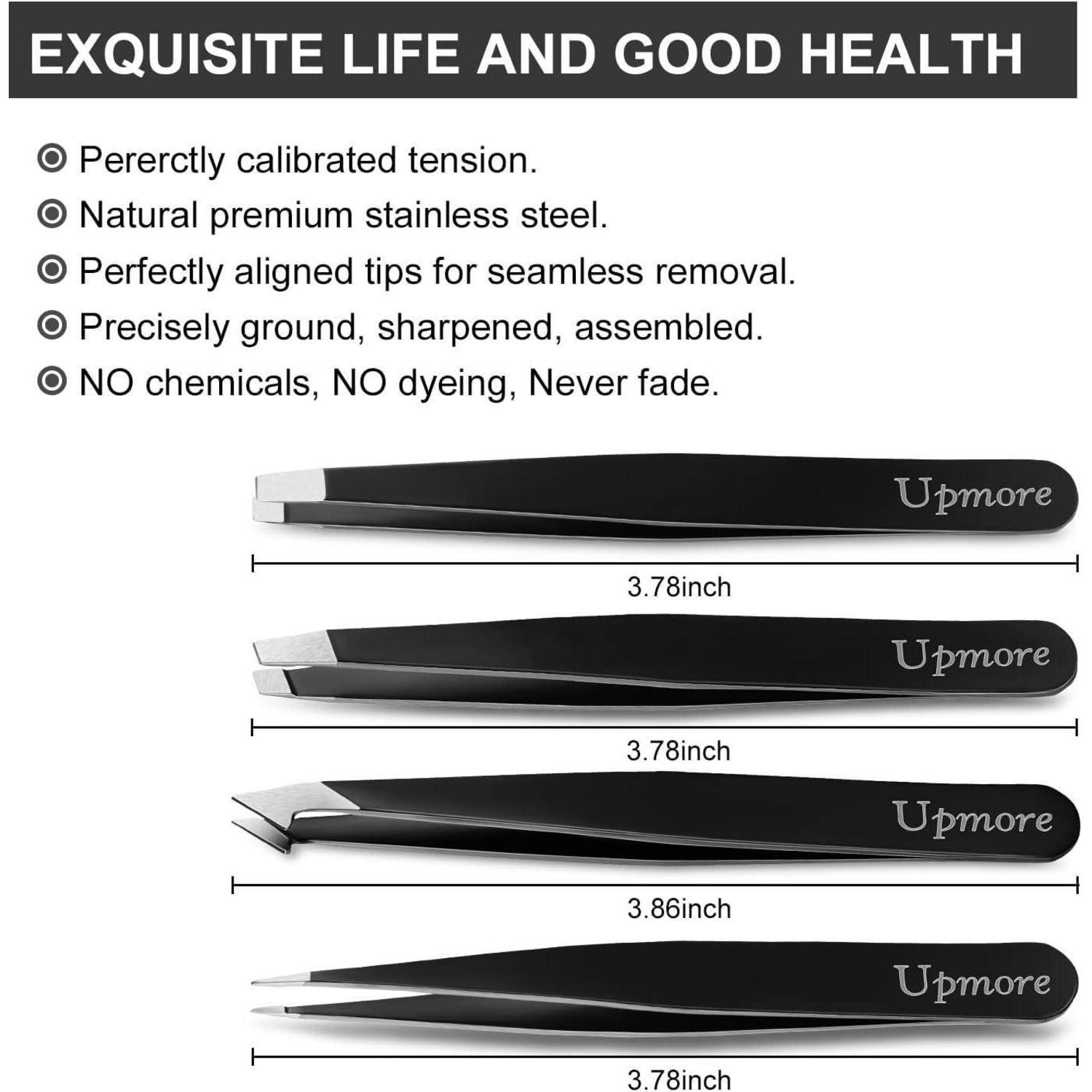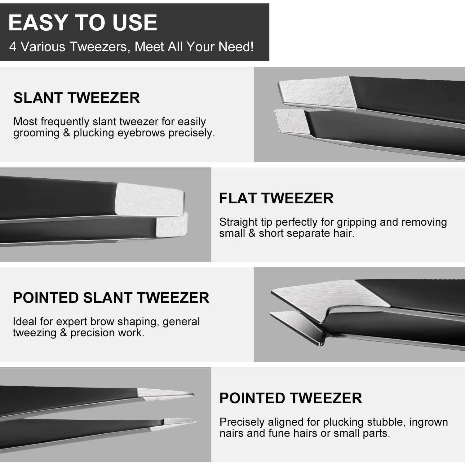 4er Pinzettenset Edelstahl Schwarz - Augenbrauenpinzette