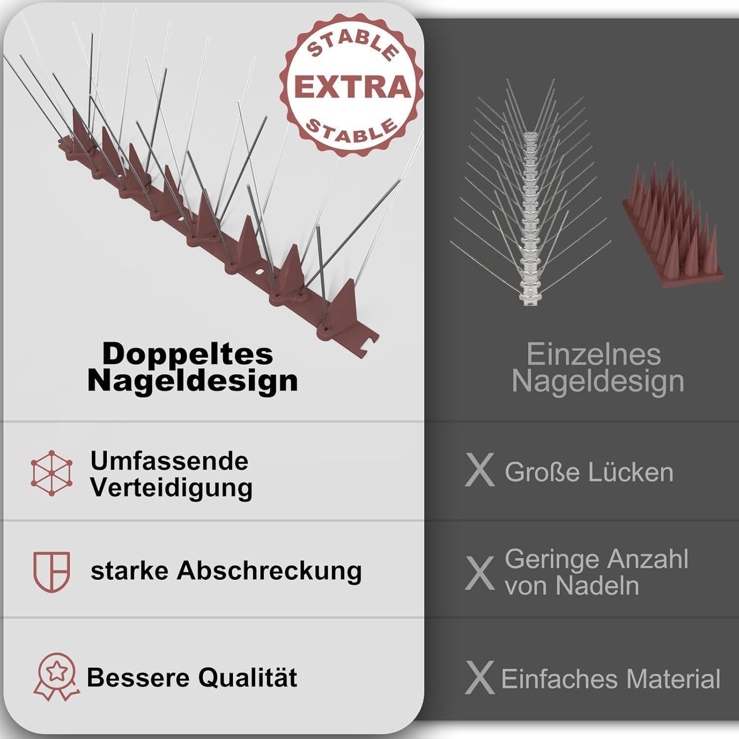 Die Angooni 4M Taubenabwehr Vogelabwehr Spikes aus Edelstahl sind die ideale Lösung, um Ihr Zuhause vor Tauben, Schwalben und anderem unerwünschten Geflügel zu schützen. Dank ihres doppelten Nageldesigns, bestehend aus hochwertigen Acryl-Kunststoffnägeln und 304-Edelstahlnägeln, bieten sie eine effektive und tierfreundliche Abwehr.