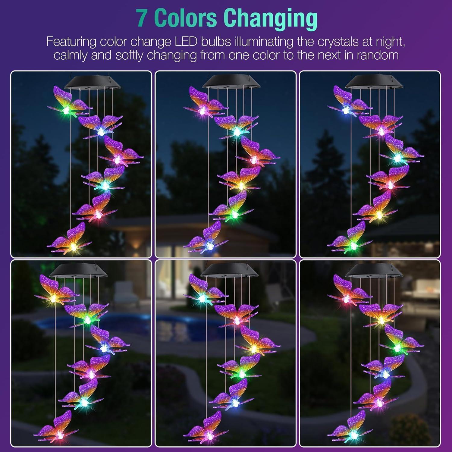 6 LED Lila Schmetterling Solar Windspiel Wasserdicht Deko
