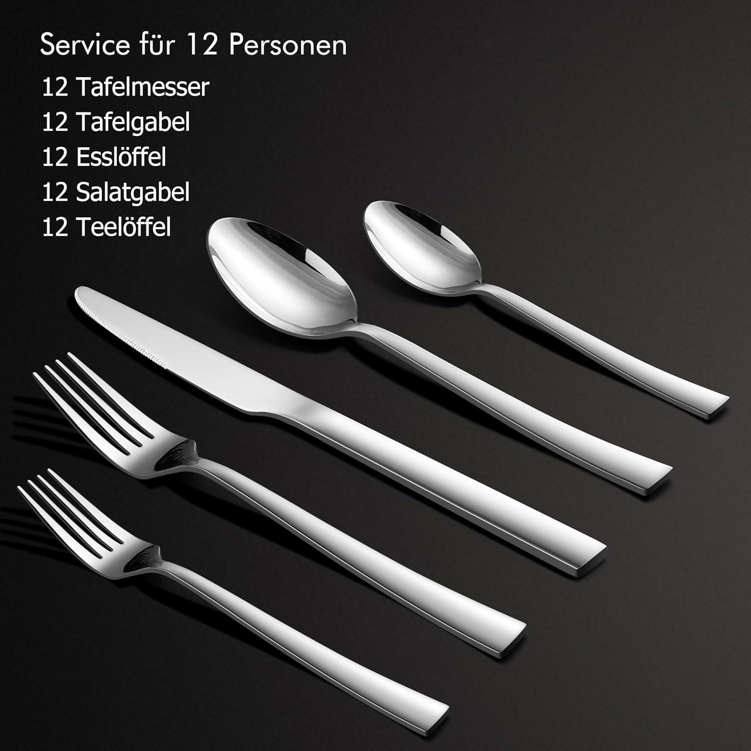 Menübesteck für 12 Personen - Enthält je 12 Tafelmesser, Tafelgabeln, Tafellöffel, Kuchengabeln, Kaffeelöffel