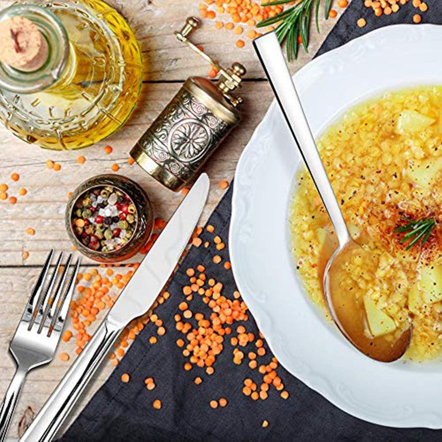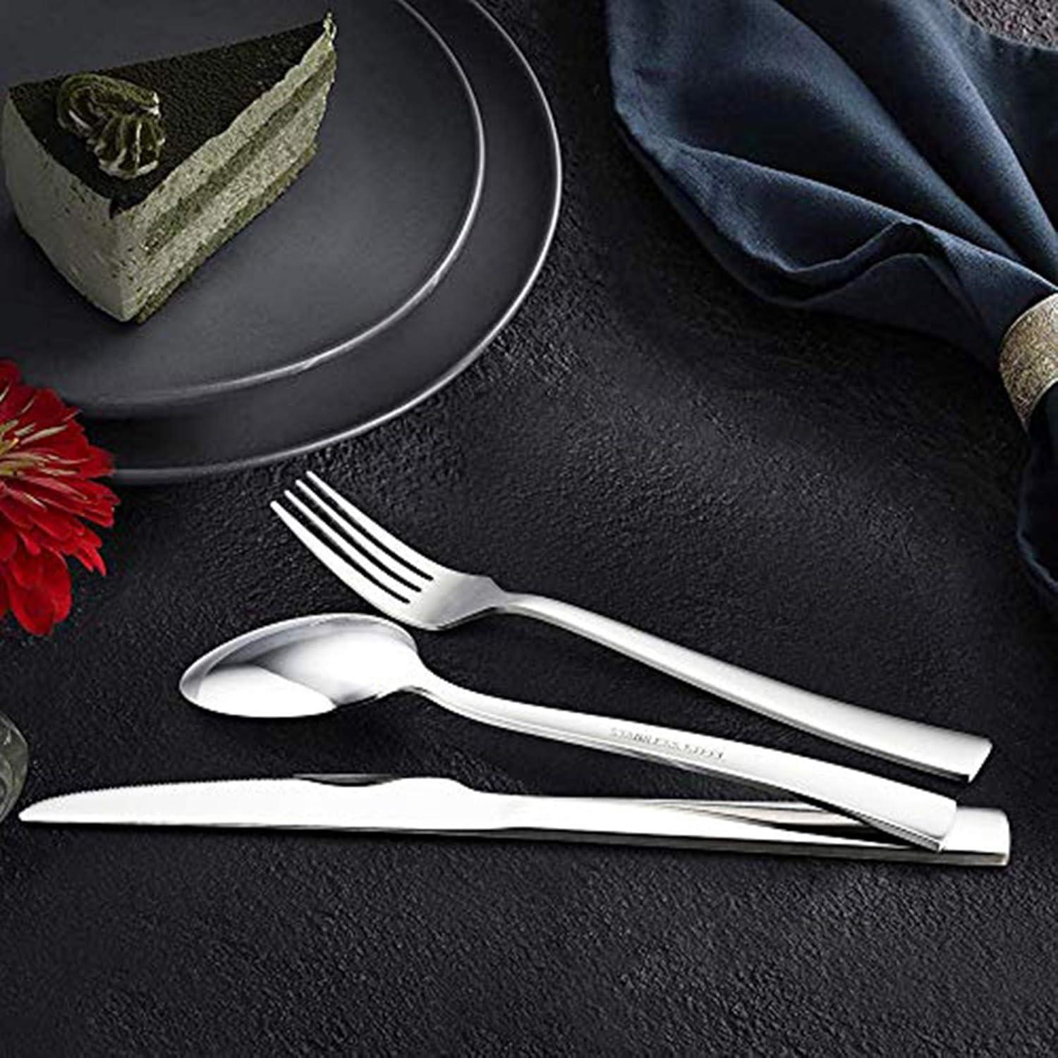 Exquisite Verarbeitung - Hochglanzpoliertes Besteck, keine rauen Stellen, scharfes Messer zum einfachen Schneiden