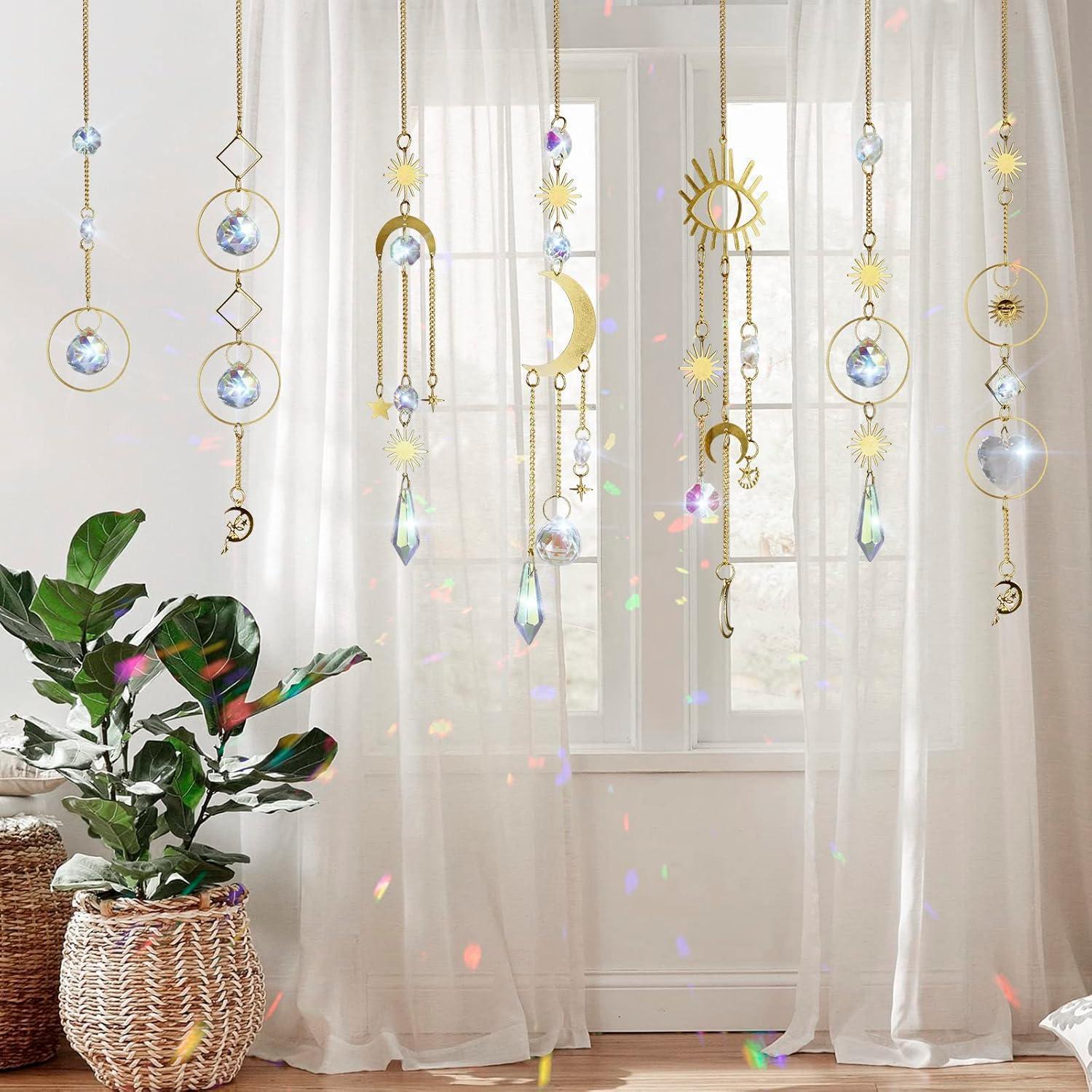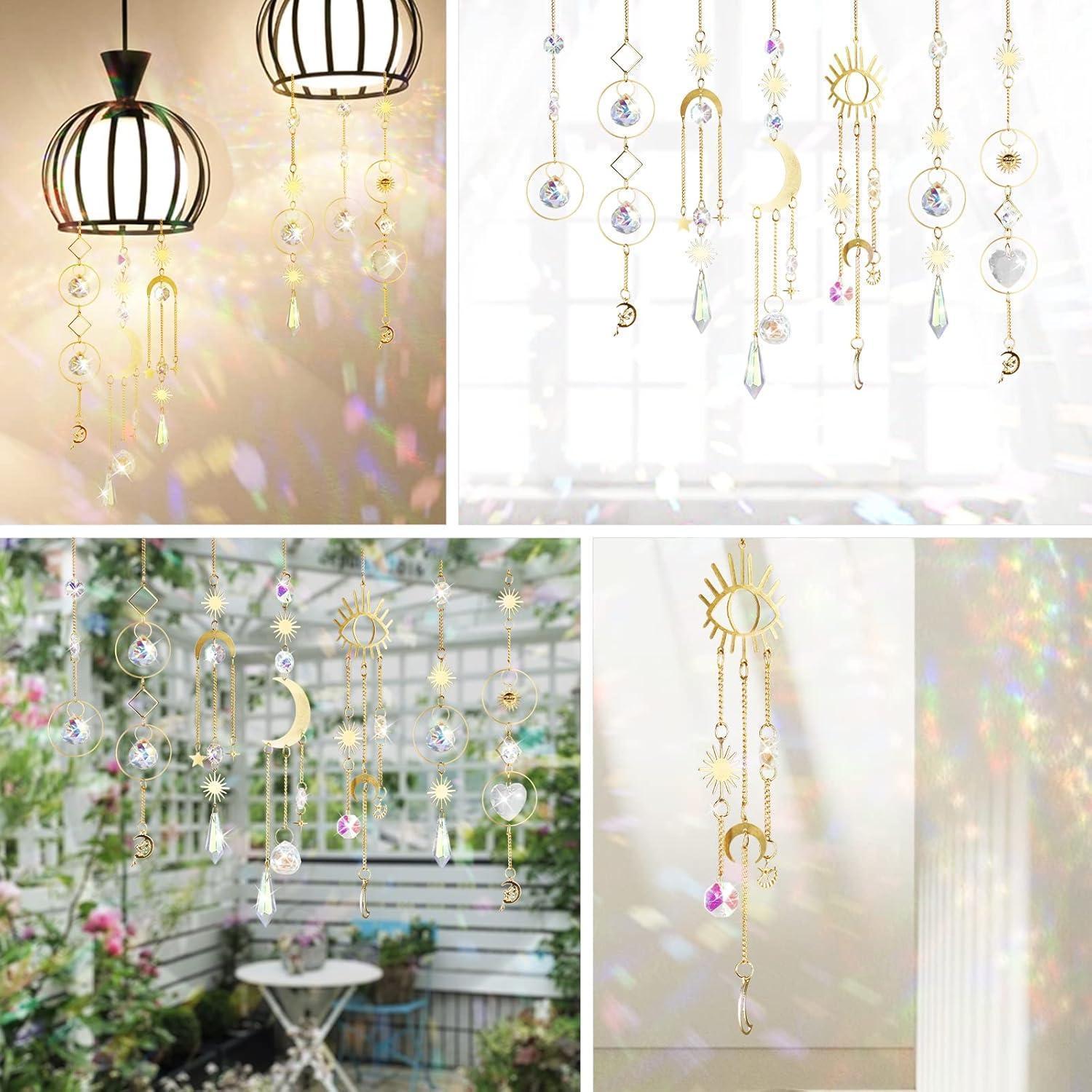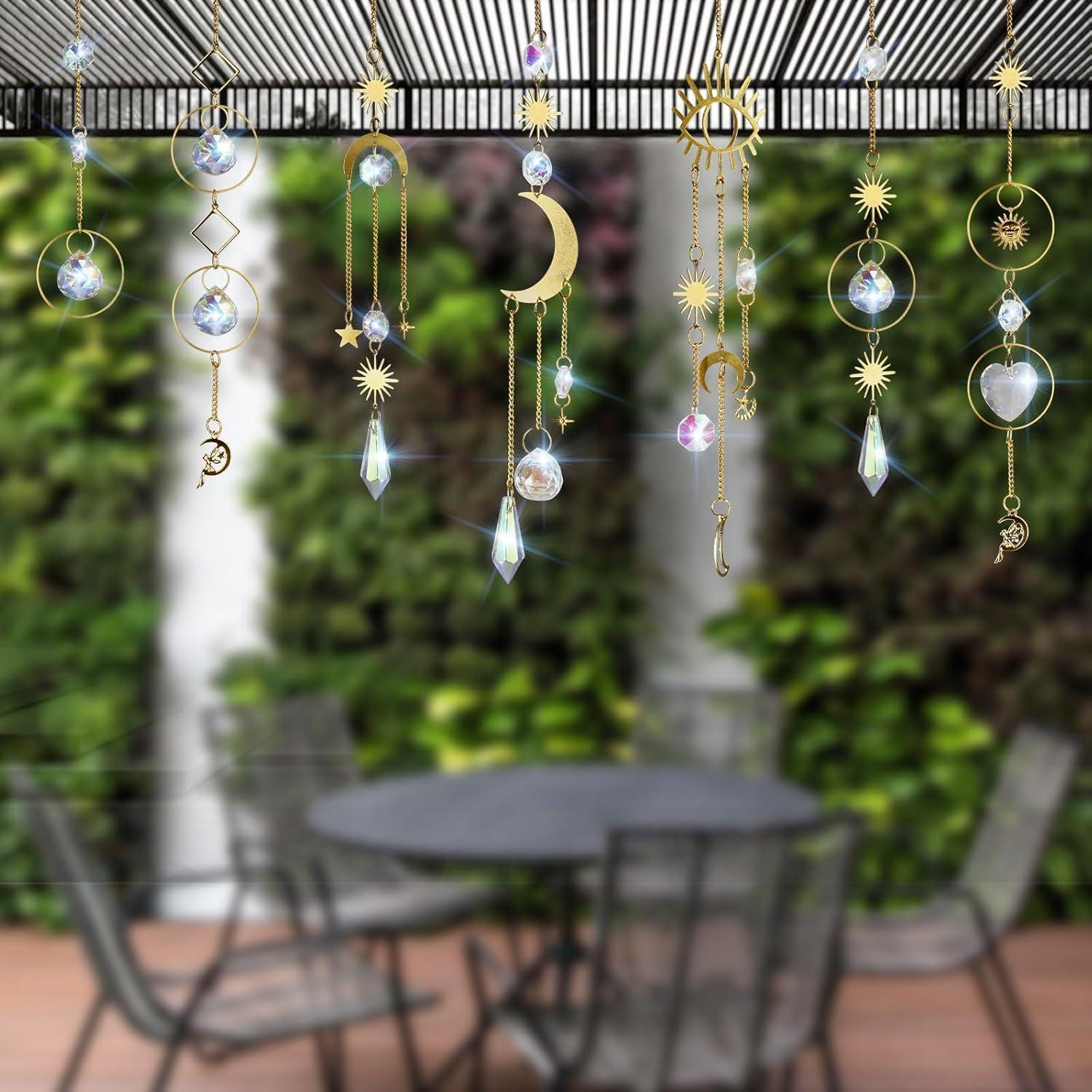 7er Set Sonnenfänger Kristall Suncatcher Mond Stern Regenbogen Fenster Deko