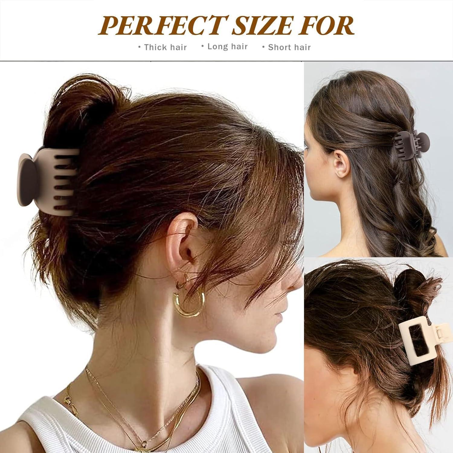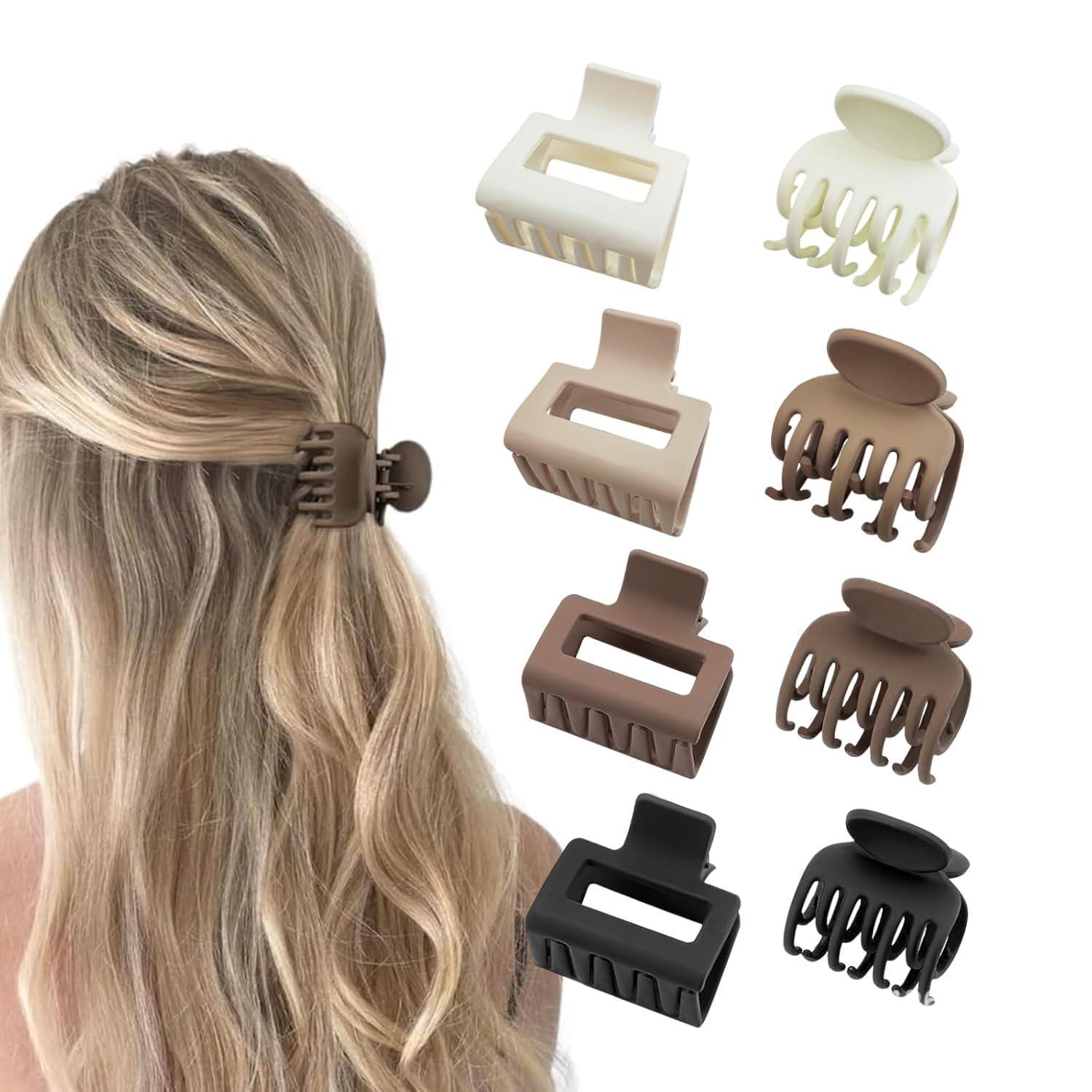Diese 8 Stück Haarklammern sind das ultimative Accessoire für Frauen und Mädchen mit dünnem Haar. Das Set enthält 4 quadratische Haarklammern und 4 Haarspangen mit zweireihigen Zähnen, alle in natürlichen Farben wie Creme, Weiß, Dunkelbraun und Schwarz.