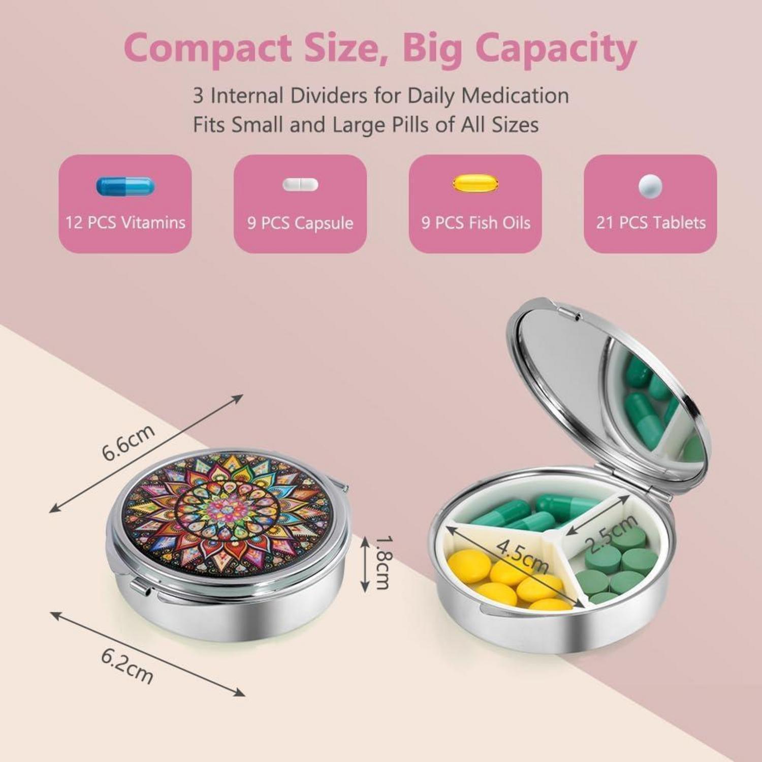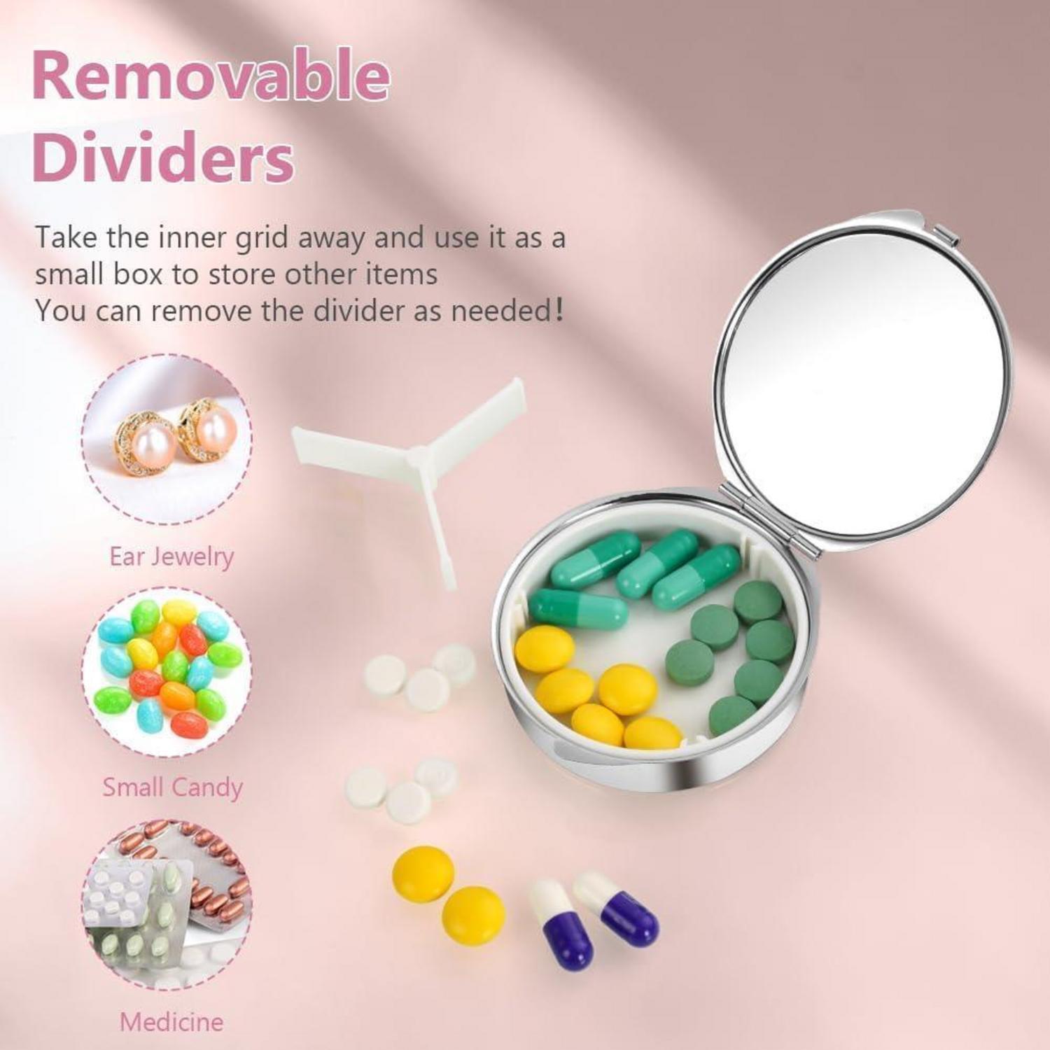 Die Pillendose verfügt über einen Spiegel im Inneren, der sie nicht nur funktional, sondern auch stilvoll macht. Sie eignet sich nicht nur für die Aufbewahrung von Medikamenten, sondern auch für Gewürze, Süßigkeiten, Kosmetika und mehr.
