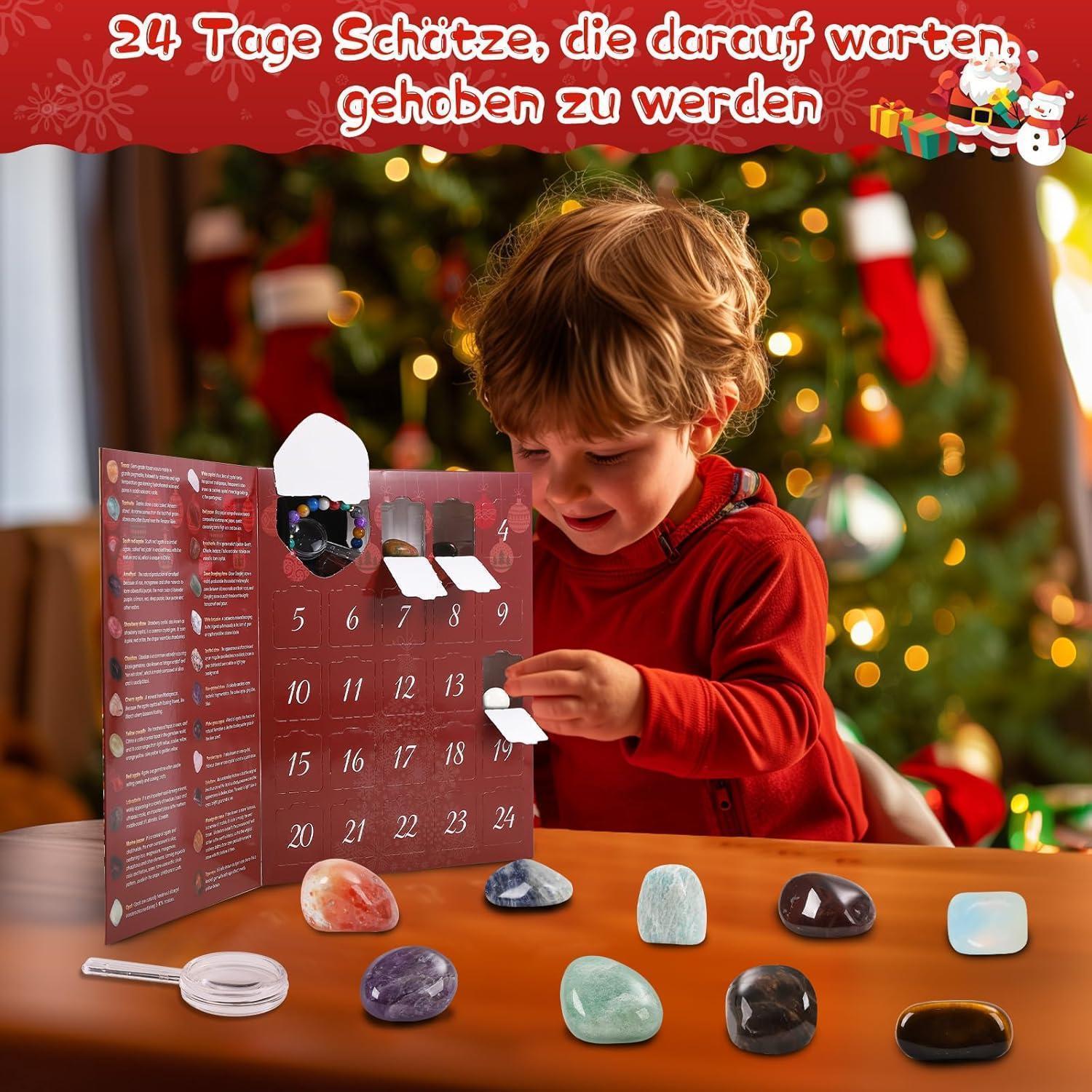 Adventskalender 2024 Kinder mit 24 Kristall Edelstein
