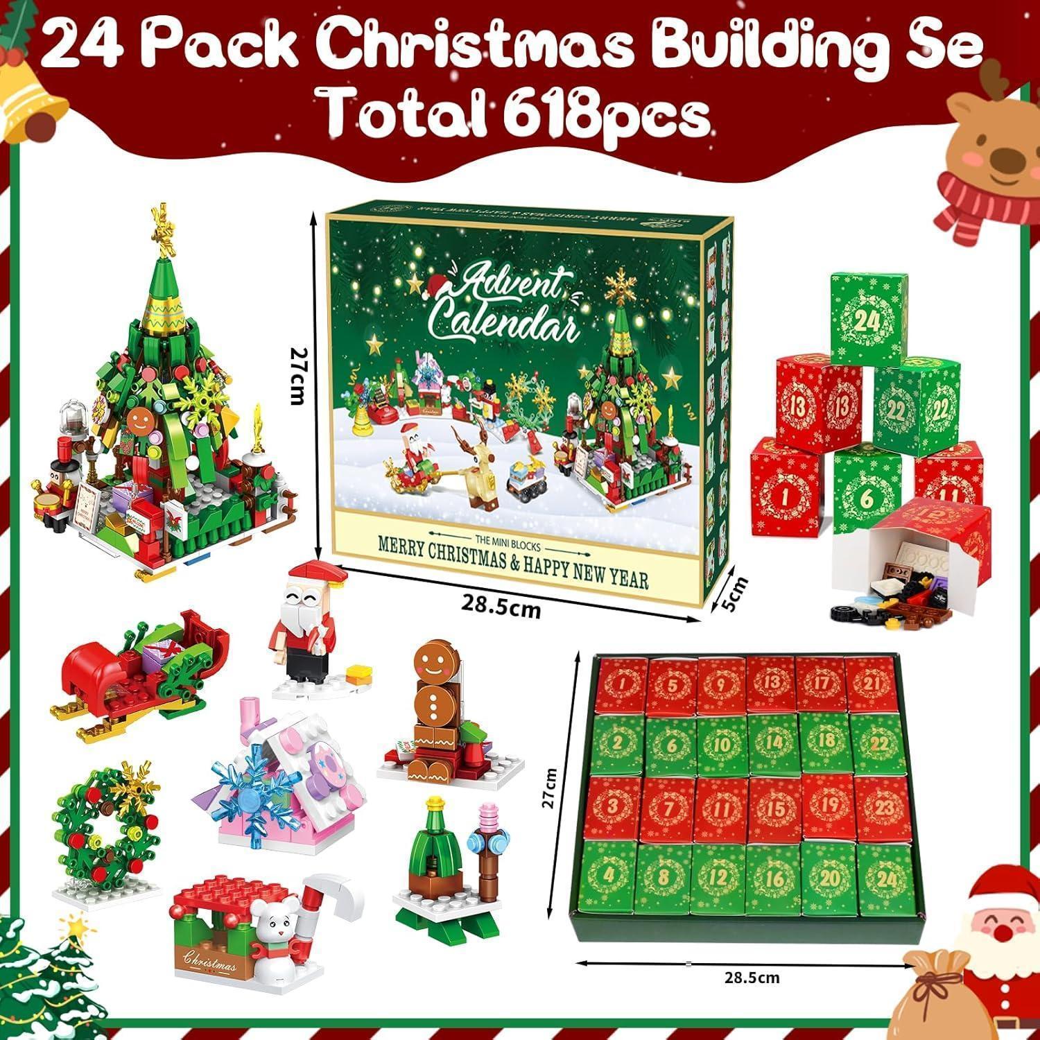 Adventskalender 2024 Kinder: Unser Weihnachts-Countdown-Kalender-Set enthält Weihnachts-Miniaturmodelle in einer 24-Tage-Geschenkbox, 618pcs bunte Blöcke, jeweils mit einem Weihnachtsthema, wie zum Beispiel jeden Tag einen Weihnachtsbaum, Weihnachtszug, Schlittenfahrt, Schneemänner, den Weihnachtsmann und mehr. Dieses interaktive Spielset wurde entwickelt, um Kreativität, Neugier und Vorfreude auf die Feiertage zu fördern und macht den Countdown bis Weihnachten zu einem unvergesslichen Abenteuer.