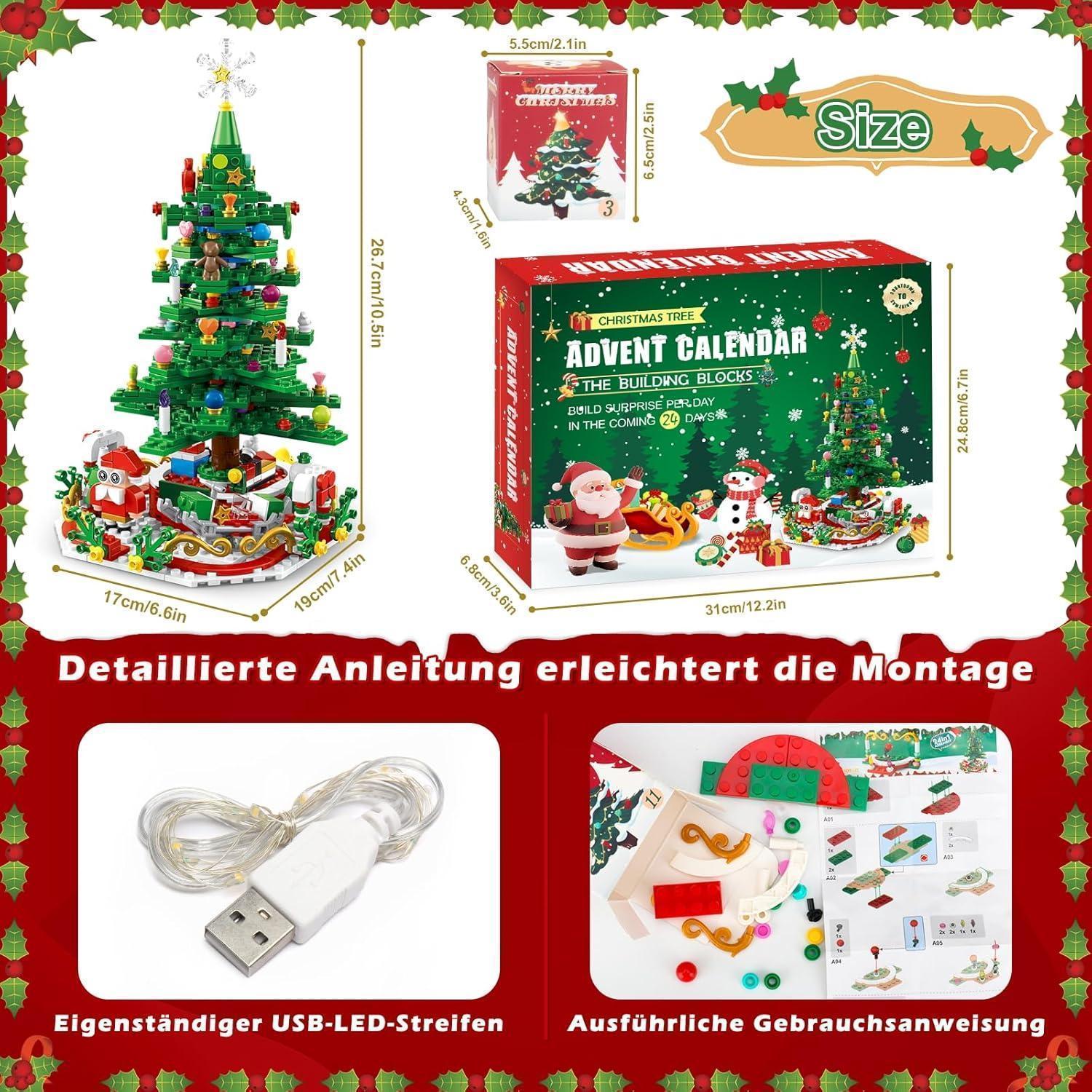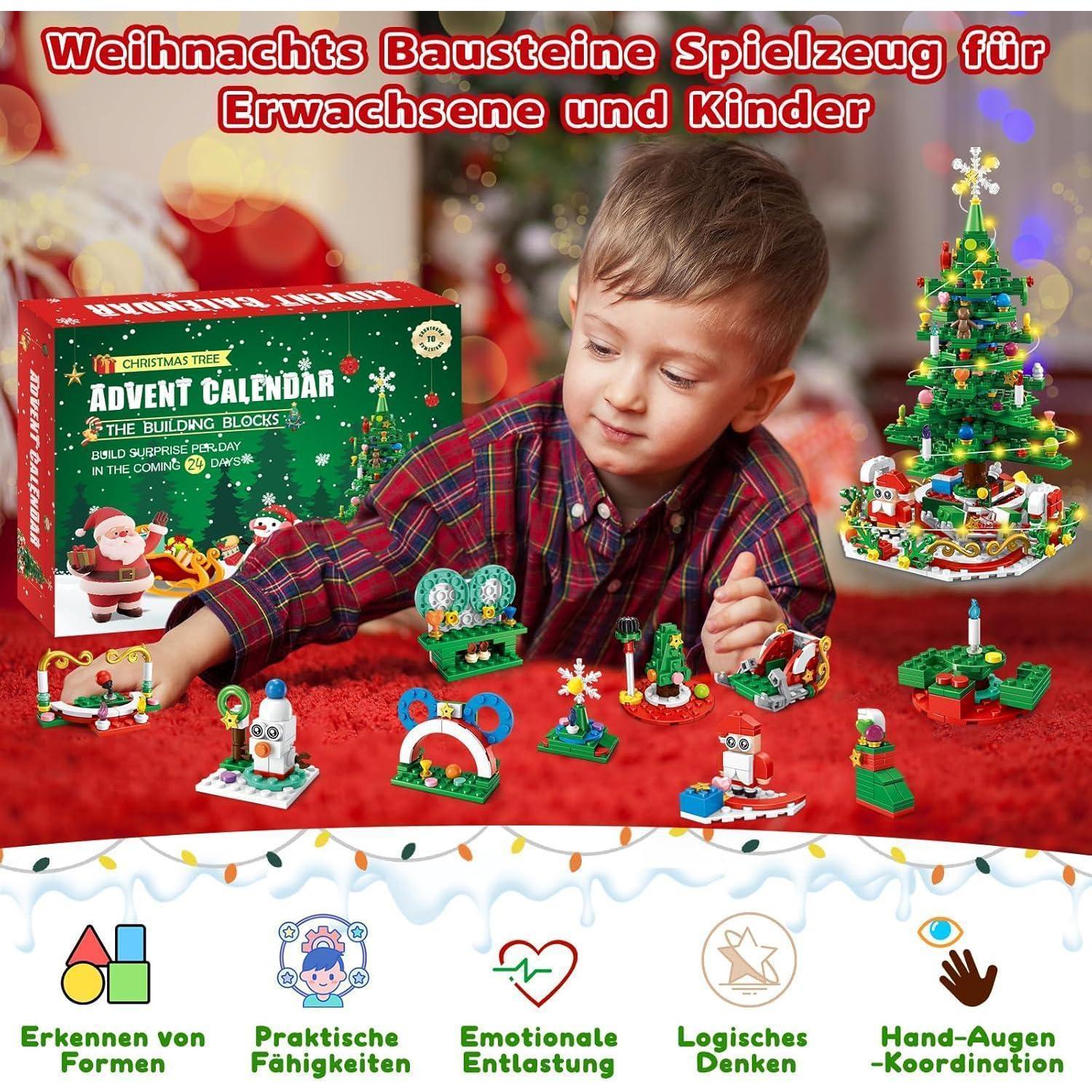 Adventskalender 2024 Kinder Weihnachtsbaum Bausteine LED 701