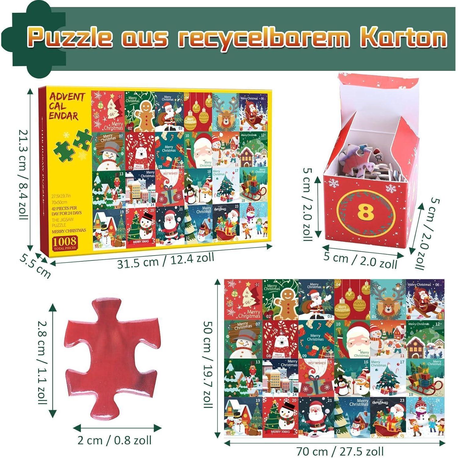 Das Adventskalender 2024 Puzzle mit 1008 Teilen ist das ideale Weihnachtsgeschenk für Erwachsene und Kinder. Die exquisite Verpackung macht es zu einem perfekten Geschenk. Die Oberfläche des Puzzles wurde speziell behandelt, damit die Farben lange lebendig bleiben. Das Puzzle kann auch als Dekoration verwendet werden, um eine festliche Atmosphäre im Haus zu schaffen.
