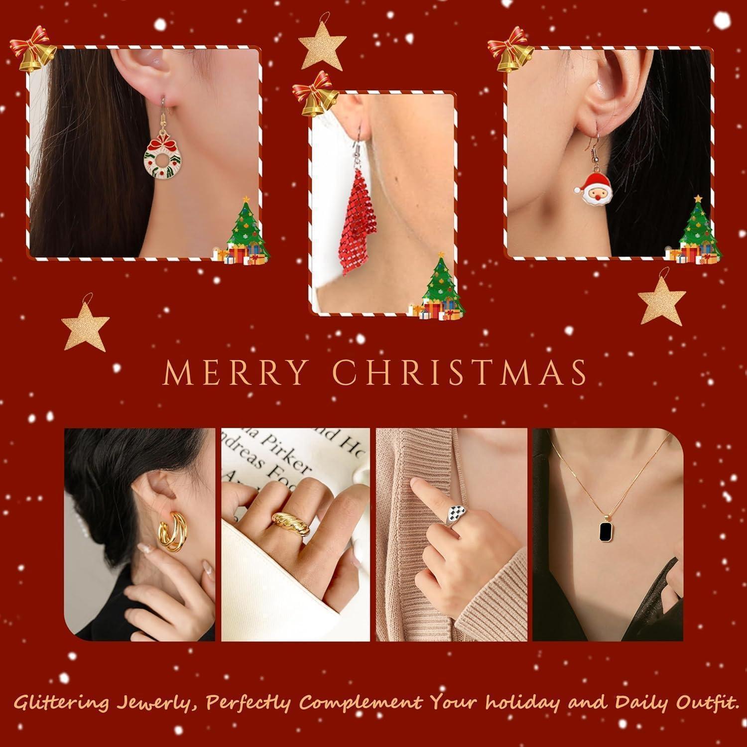 ADVENTSKALENDER SCHMUCK - Der Adventskalender enthält Ohrringe, Halsketten und Ringe, sowohl niedliche und lustige Weihnachtsmodelle als auch elegante und zarte, alltagstaugliche Modelle, die für eine Vielzahl von Anlässen geeignet sind, damit Sie sich stilvoller kleiden können.
