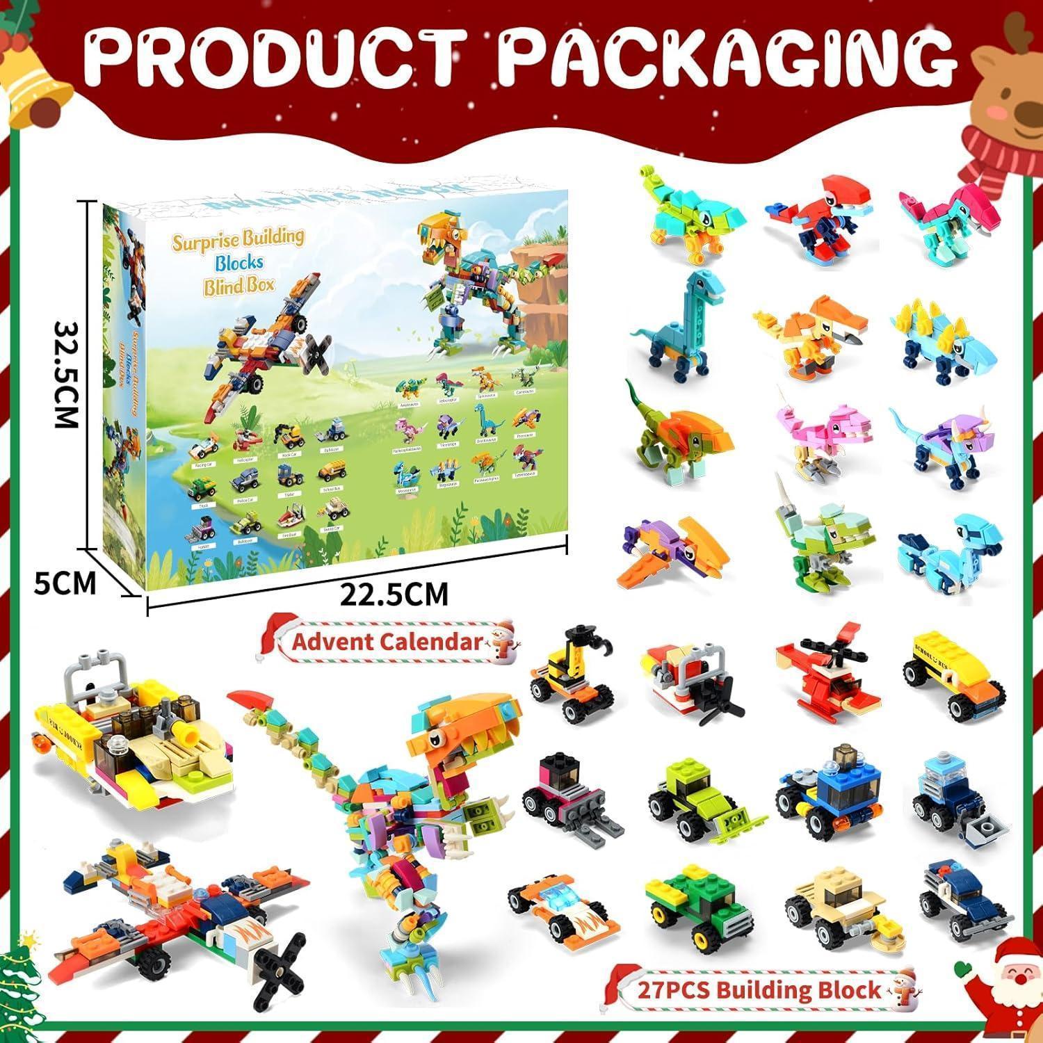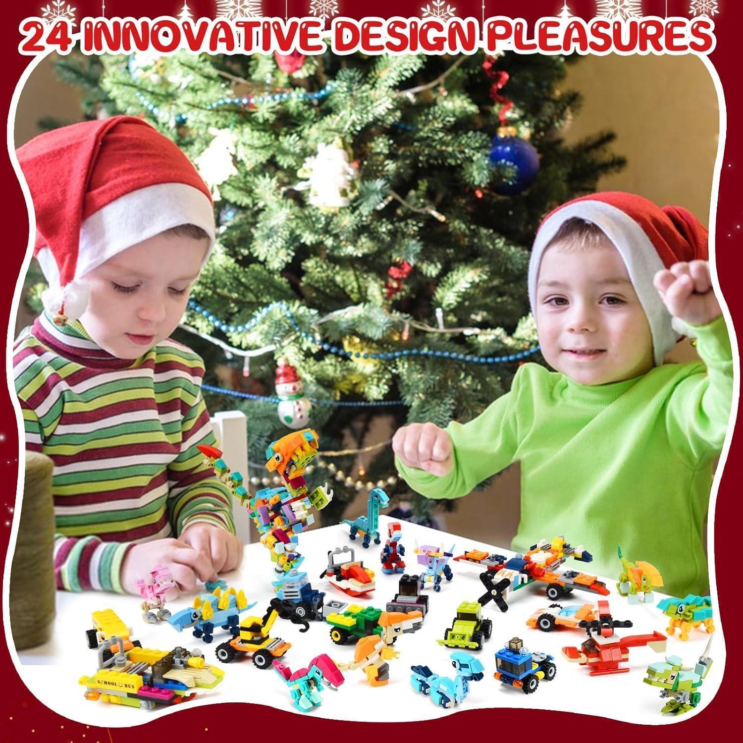 24 Tage Weihnachts Countdown Überraschung – Unser Mini Baustein Set mit Weihnachts-Countdown Kalendern enthält ein wunderschönes Weihnachtsfest mit 24 bezaubernden prähistorischen Freunden wie Spinosaurus, Velociraptor, Tyrannosaurus, Triceratops und mehr. Dieses Baustein-Spielzeug mit Weihnachts Countdown Kalender 2024 wird mit 24 Überraschungsgeschenkboxen geliefert, die Ihrem Kind 24 Tage lang Freude und Spannung in den Weihnachts-Countdown bringen.