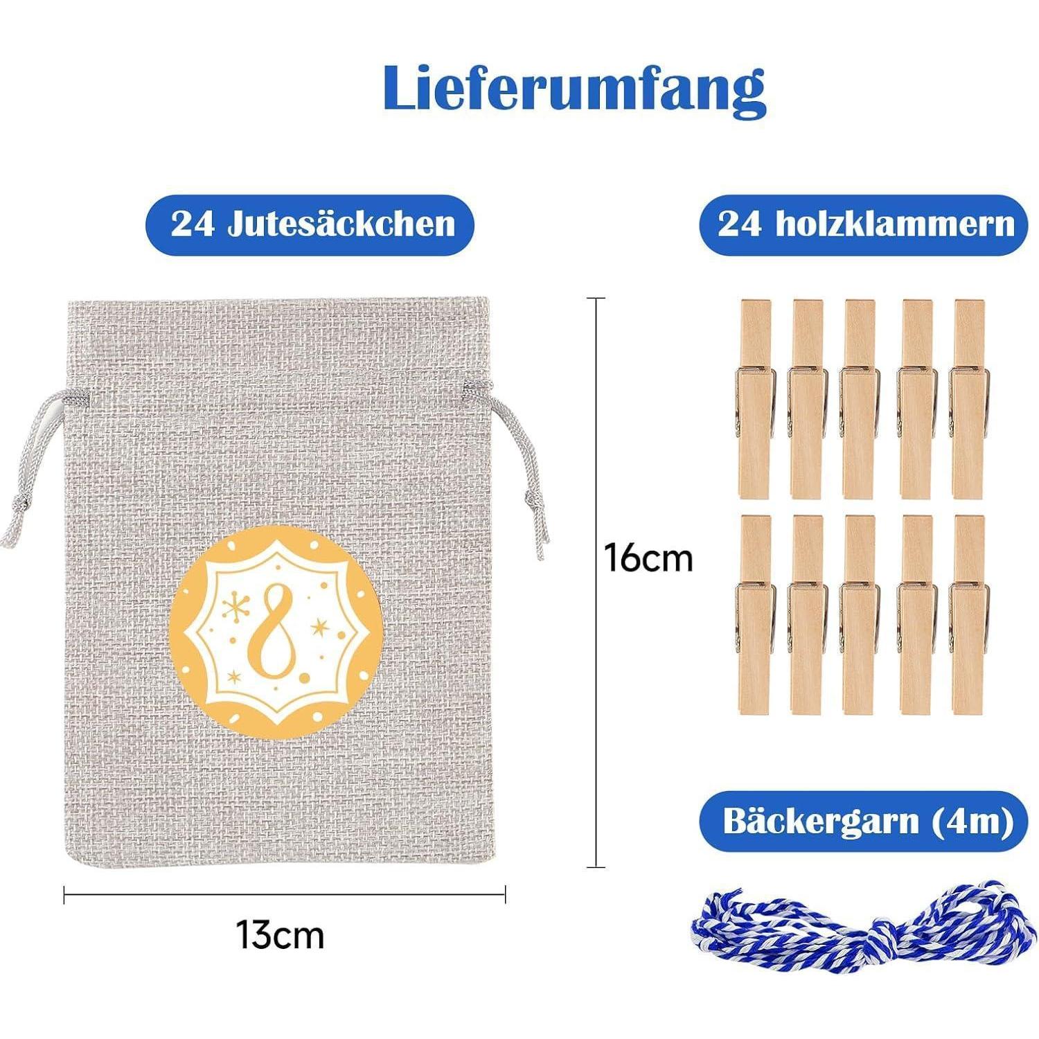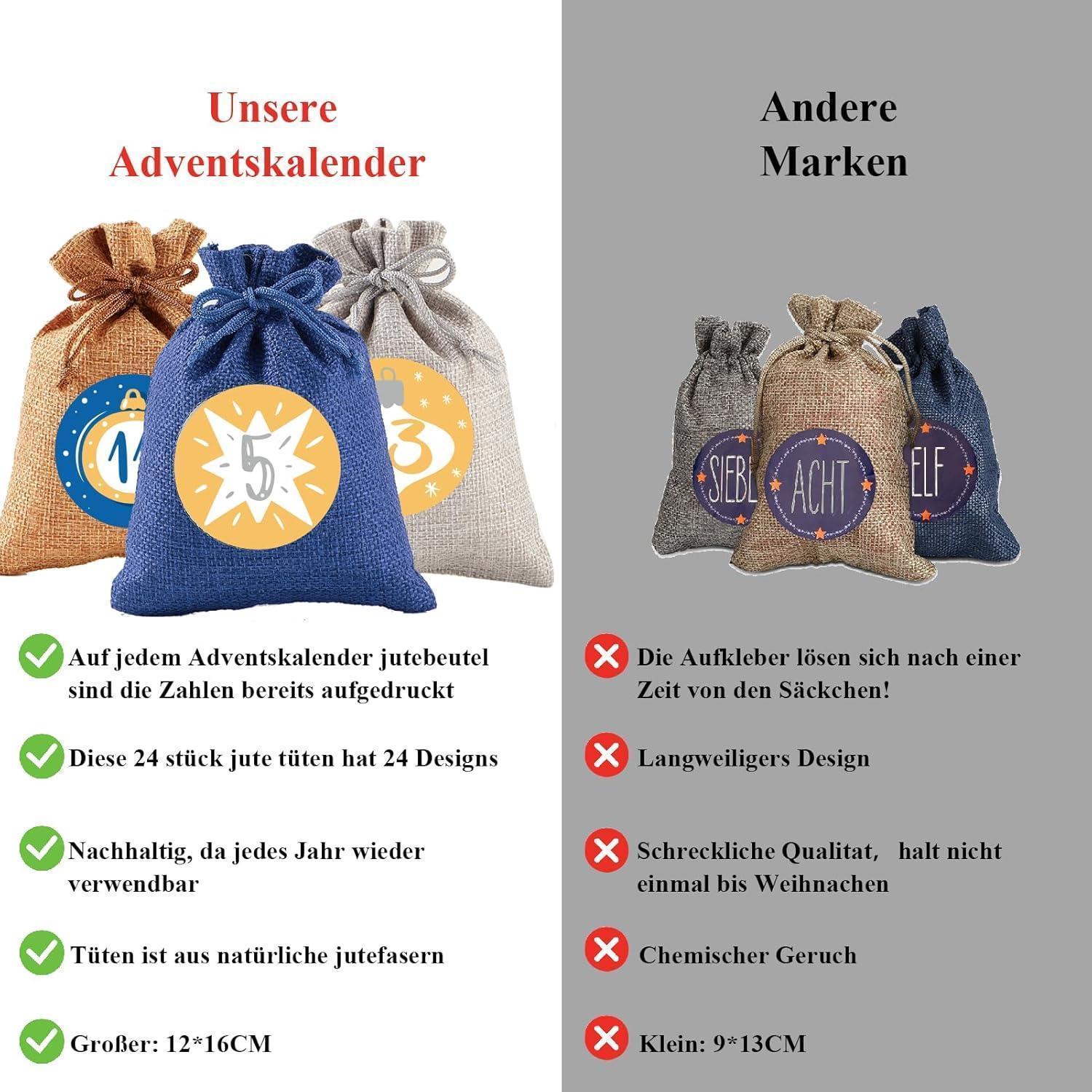 Adventskalender Jutesäckchen 24 große selbstbefüllbare