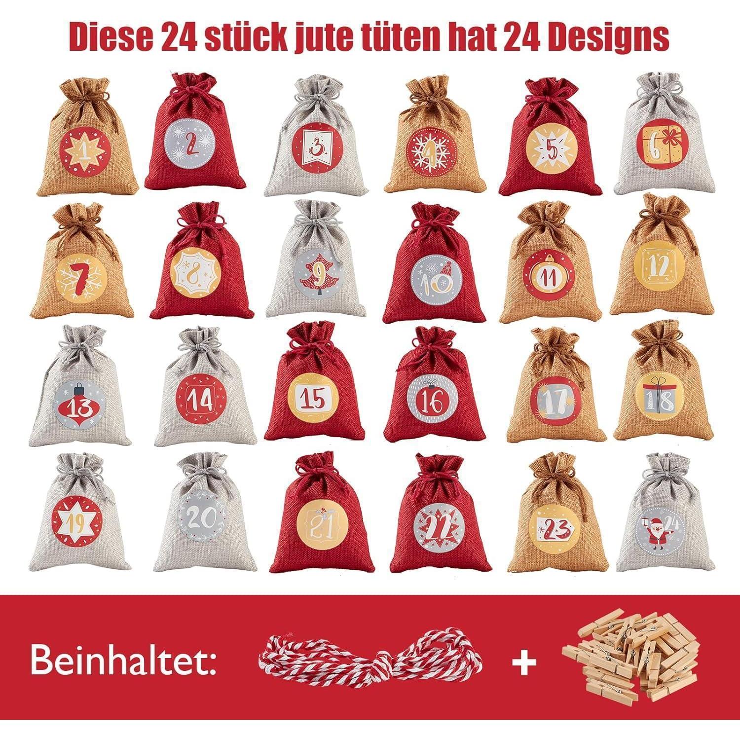 Adventskalender Jutesäckchen zum Befüllen 24er Set für