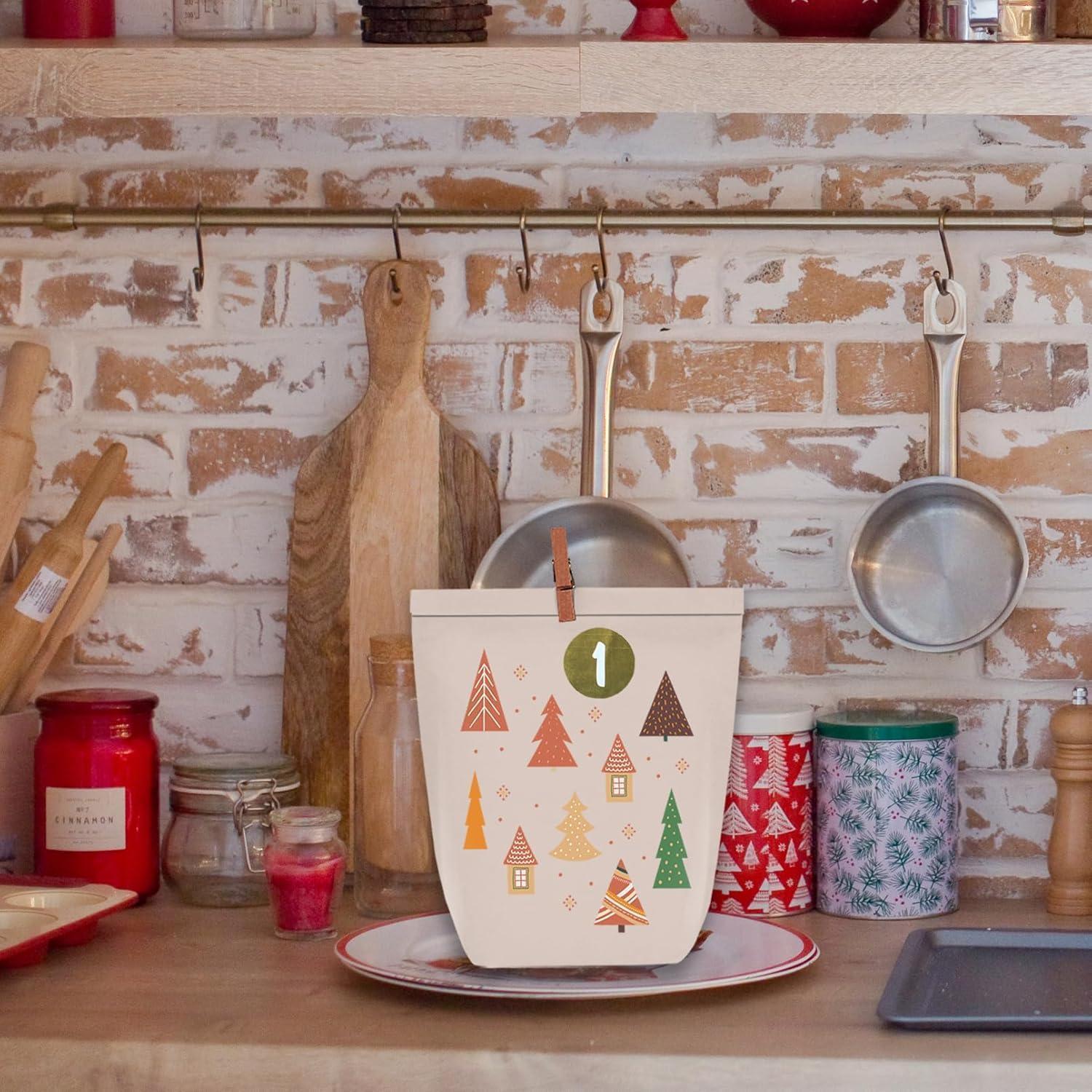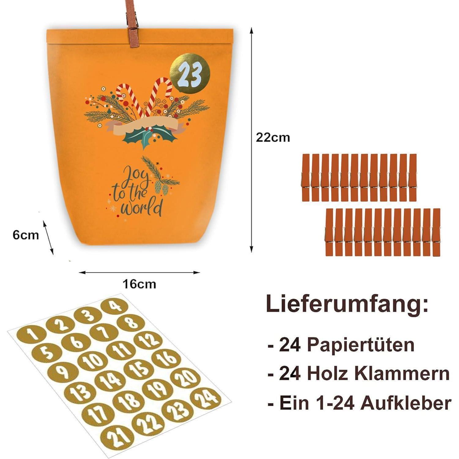 Countdown Adventskalender für Kinder, Mädchen, Jungen, Männer und Frauen. Der Geschenktütchen zum Befüllen ist nicht nur ein Highlight für Kinder, sondern auch Erwachsene haben große Freude daran, sich die Wartezeit bis Weihnachten durch tägliche Überraschungen zu versüßen. Der Adventskalender zum Befüllen zeigt sich in einem niedlichen, modernen Design für die festliche Weihnachtszeit. Mit schönen Kreuzbodenbeuteln, Adventskalenderzahlen-Etiketten selbstklebend und Zahlenaufklebern.