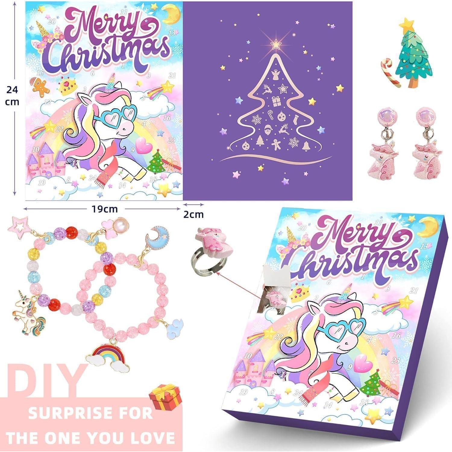 Adventskalender Mädchen 2024 Einhorn Schmuck 24 Tage