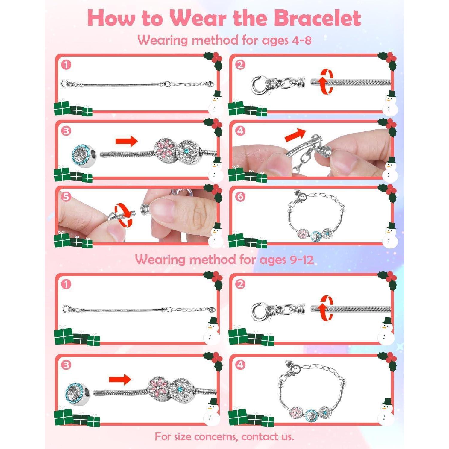 Entdecken Sie die Perlen und Armbänder im Inneren: Jedes Fenster enthält 22 Perlen und 2 Armbänder, jedes mit einer Länge von 19 cm plus einer zusätzlichen verstellbaren Verlängerung von 5 cm. Hergestellt aus robustem Kunststoff und umweltfreundlicher Legierung, sorgt dieses Mädchenschmuck-Bastelset für Haltbarkeit und Sicherheit, was es perfekt für den wiederholten Gebrauch als Spielzeug und Geschenke macht. So haben Eltern ein gutes Gefühl, während es endlosen Spaß für Kinder bietet.