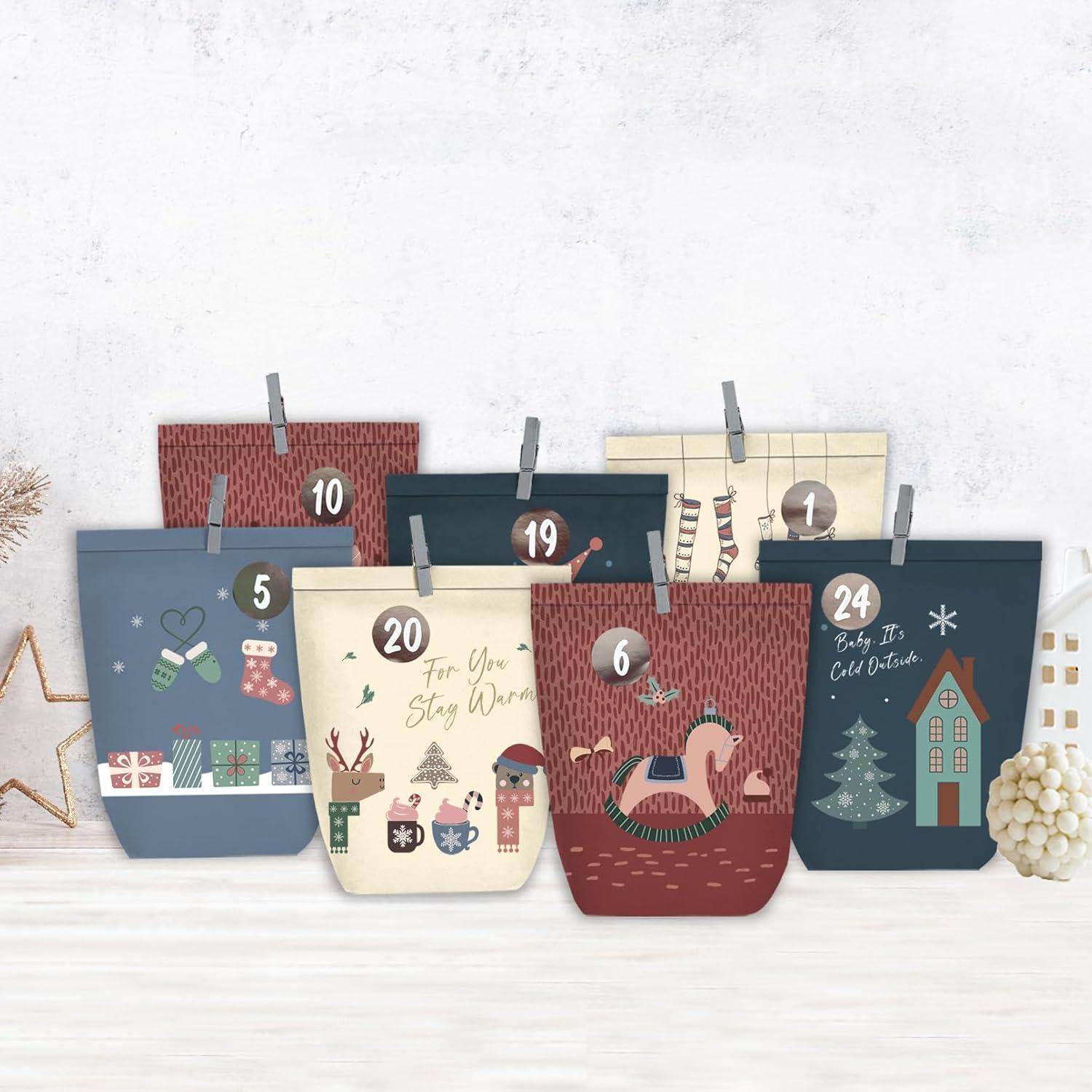 Adventskalender Papiertüten zum Selber Basteln Blau 24er Set