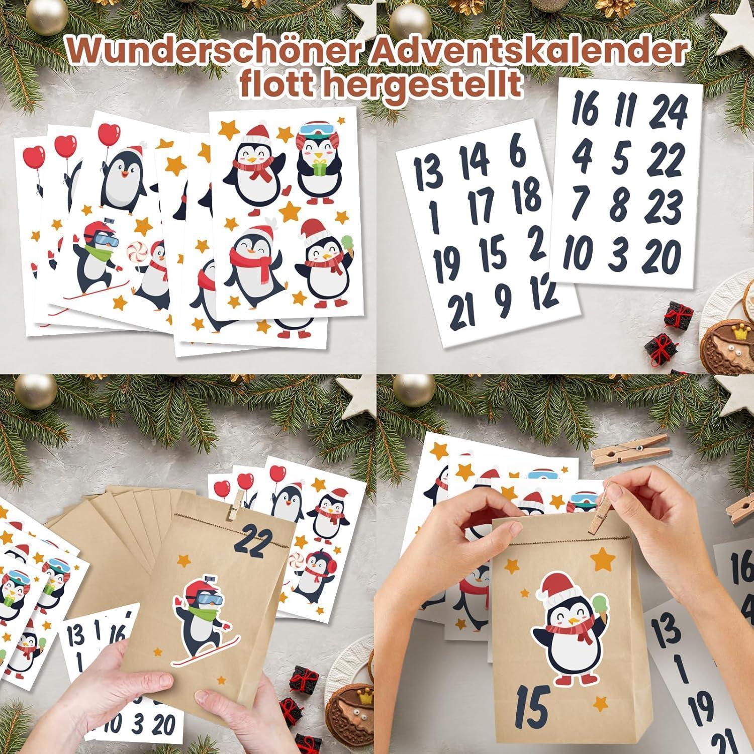 Adventskalender Pinguine Tüten zum Befüllen groß DIY