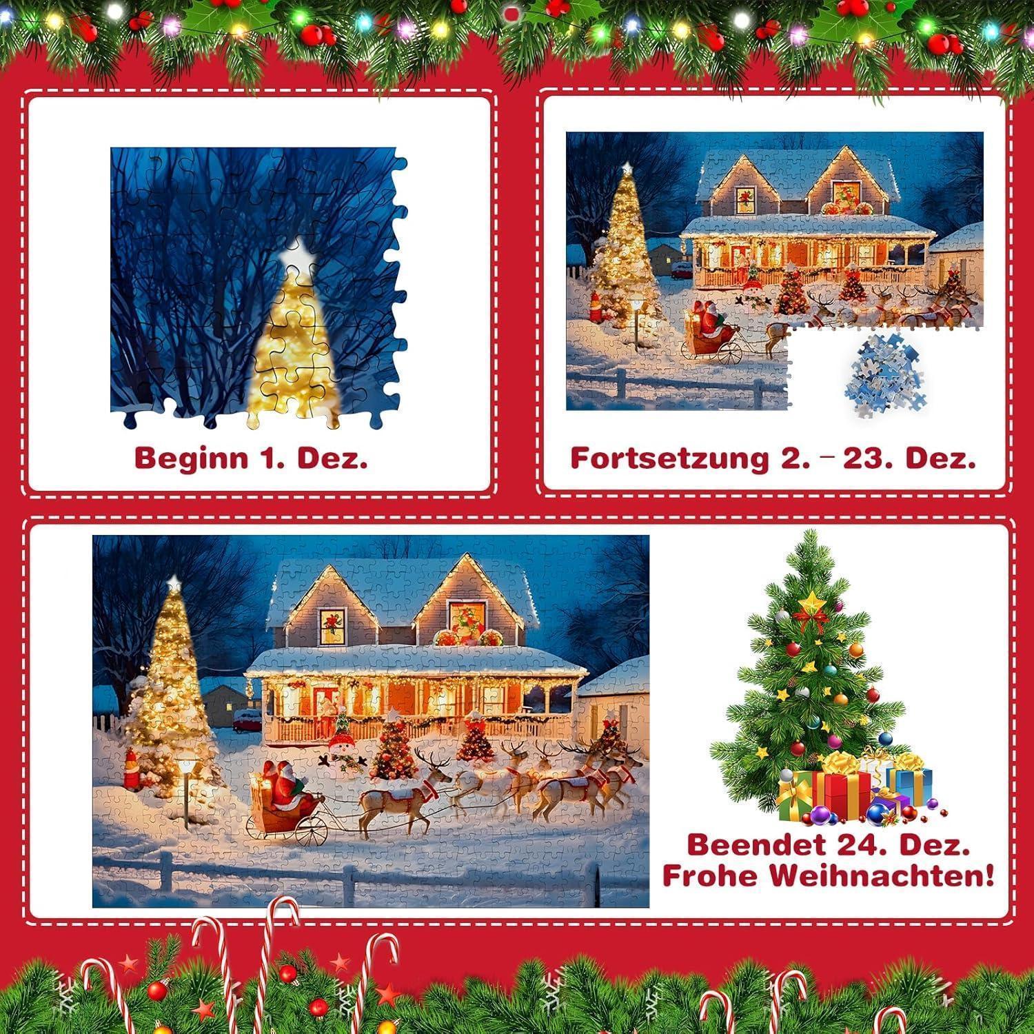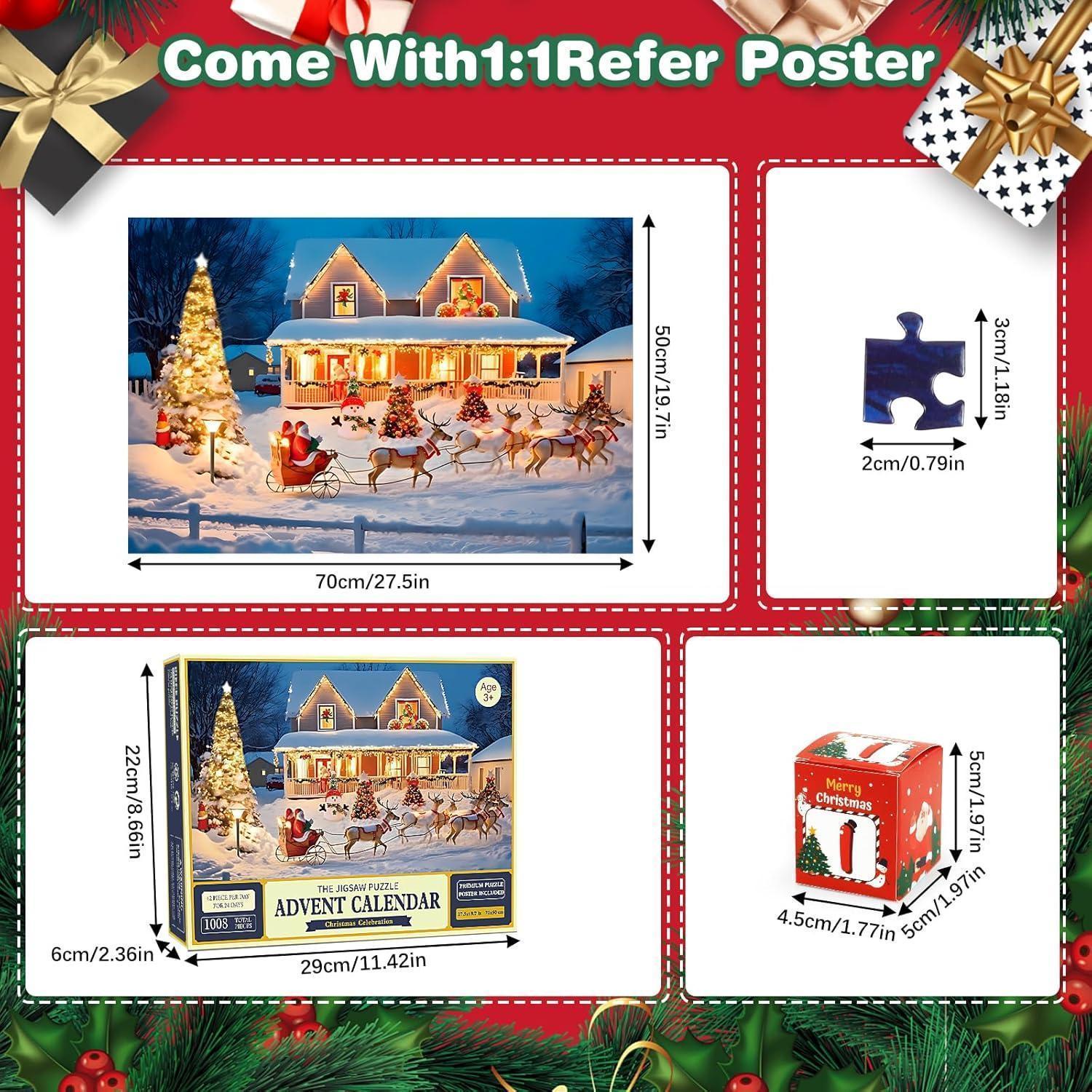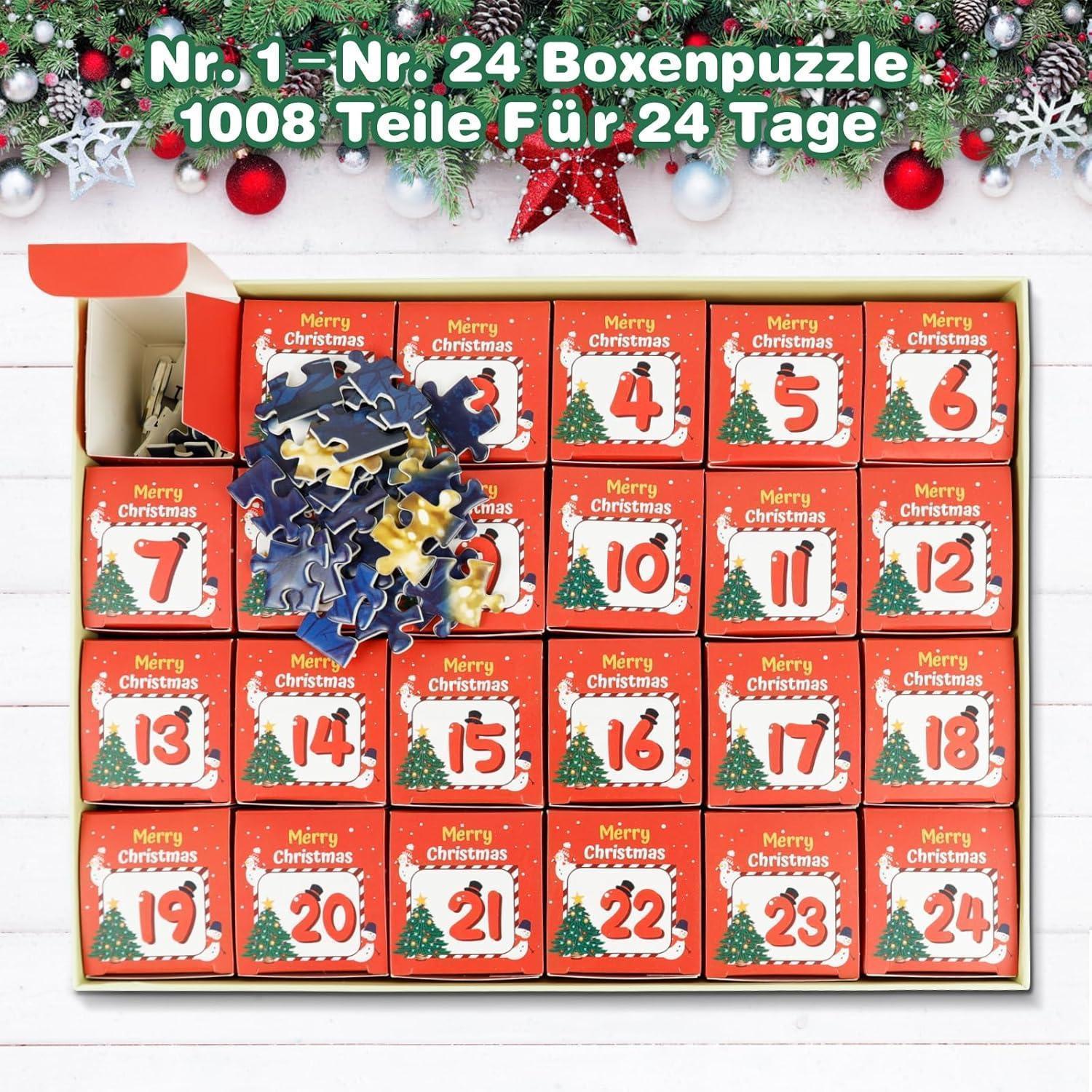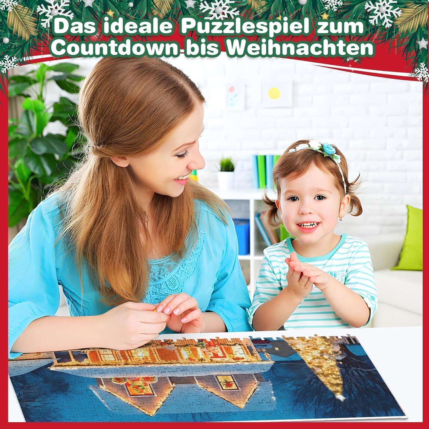 Herzerwärmendes Weihnachtsgeschenk - Adventskalender Puzzle mit 1008 Teilen für einen magischen Countdown zu Weihnachten.
