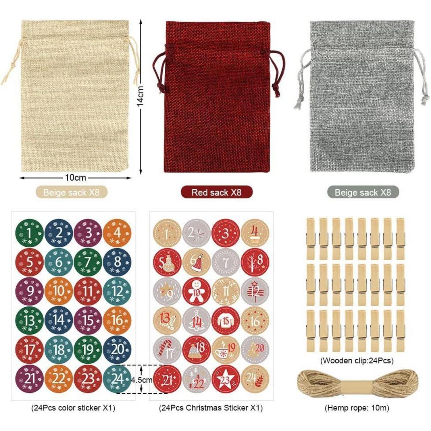 Adventskalender Stoffbeutel 24 Zahlenaufklebern DIY
