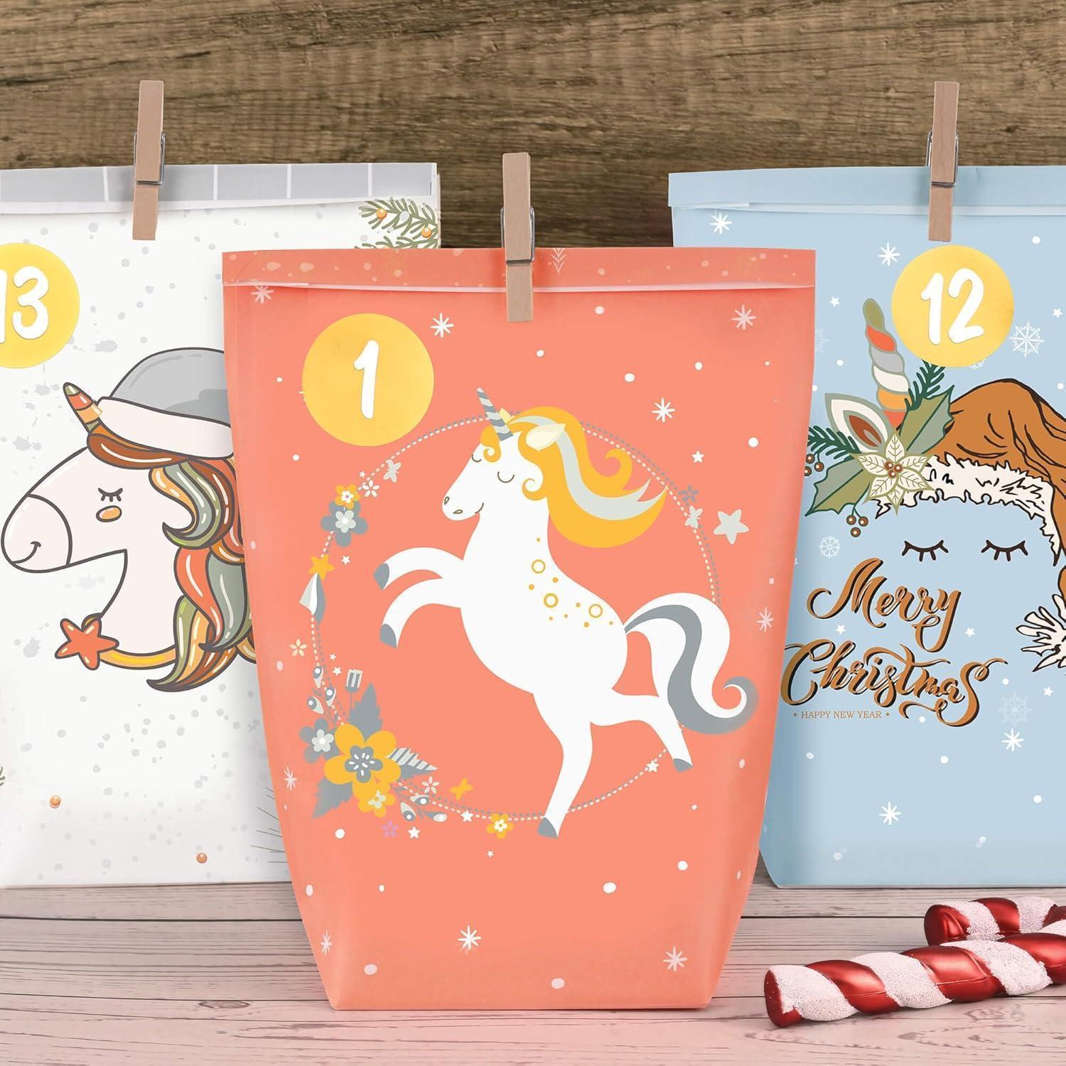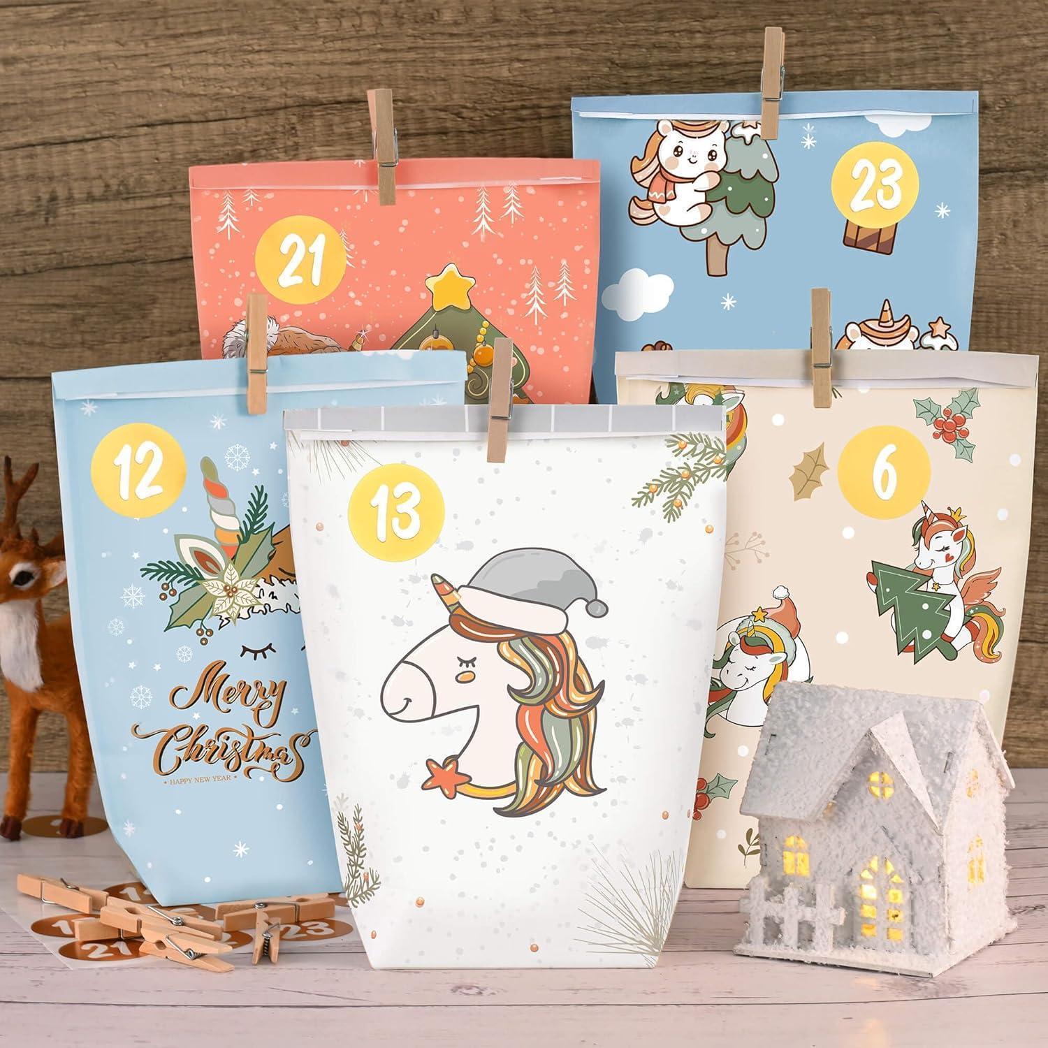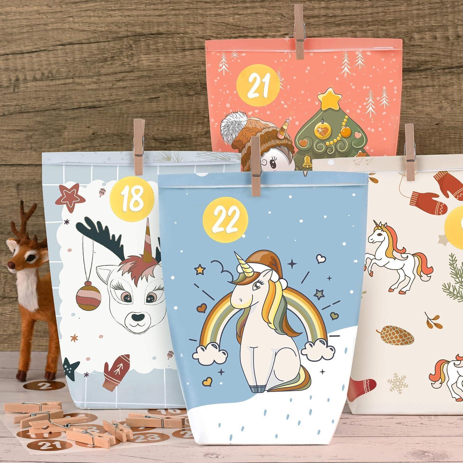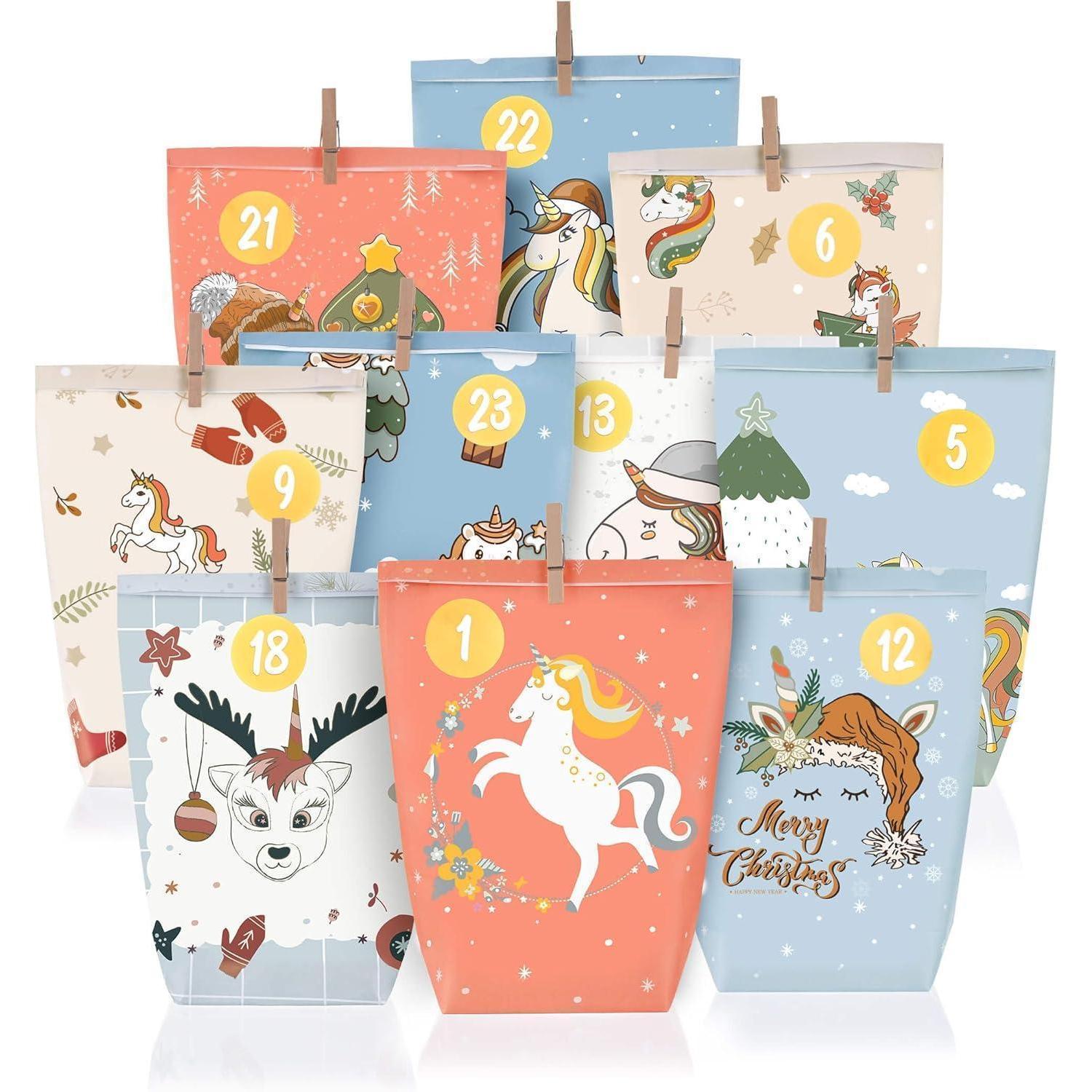 Adventskalender Tüten Einhorn Motiv 24 bedruckte
