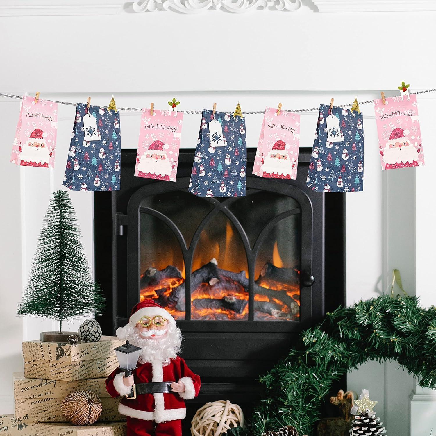Adventskalender Zum Befüllen Groß: 12 große Geschenkpapiertüten mit einer Größe von 31 cm * 18 cm, 12 kleine Geschenkpapiertüten mit einer Größe von 22.5 cm * 12.5 cm, einen schönen Aufkleber für einen Countdown-Kalender, einige dekorative Weihnachtskarten, 24 Holzklammern und Ein Bündel 2m langes Seil.