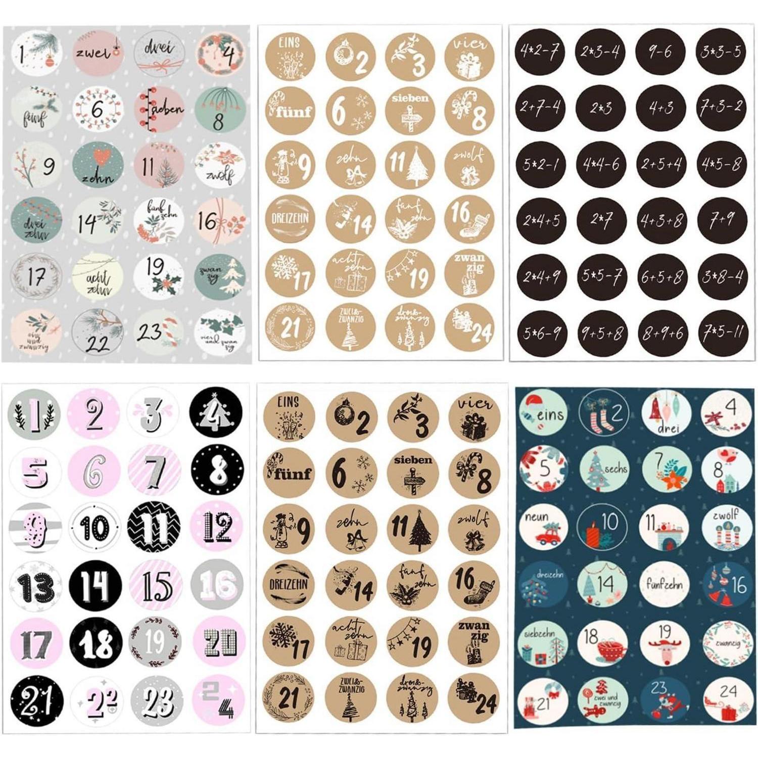 Adventskalender Zahlen Aufkleber 6x24 Weihnachten Stickers