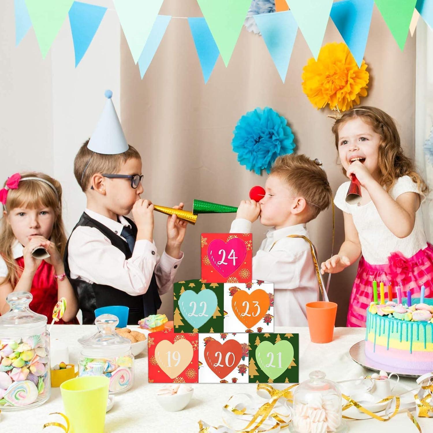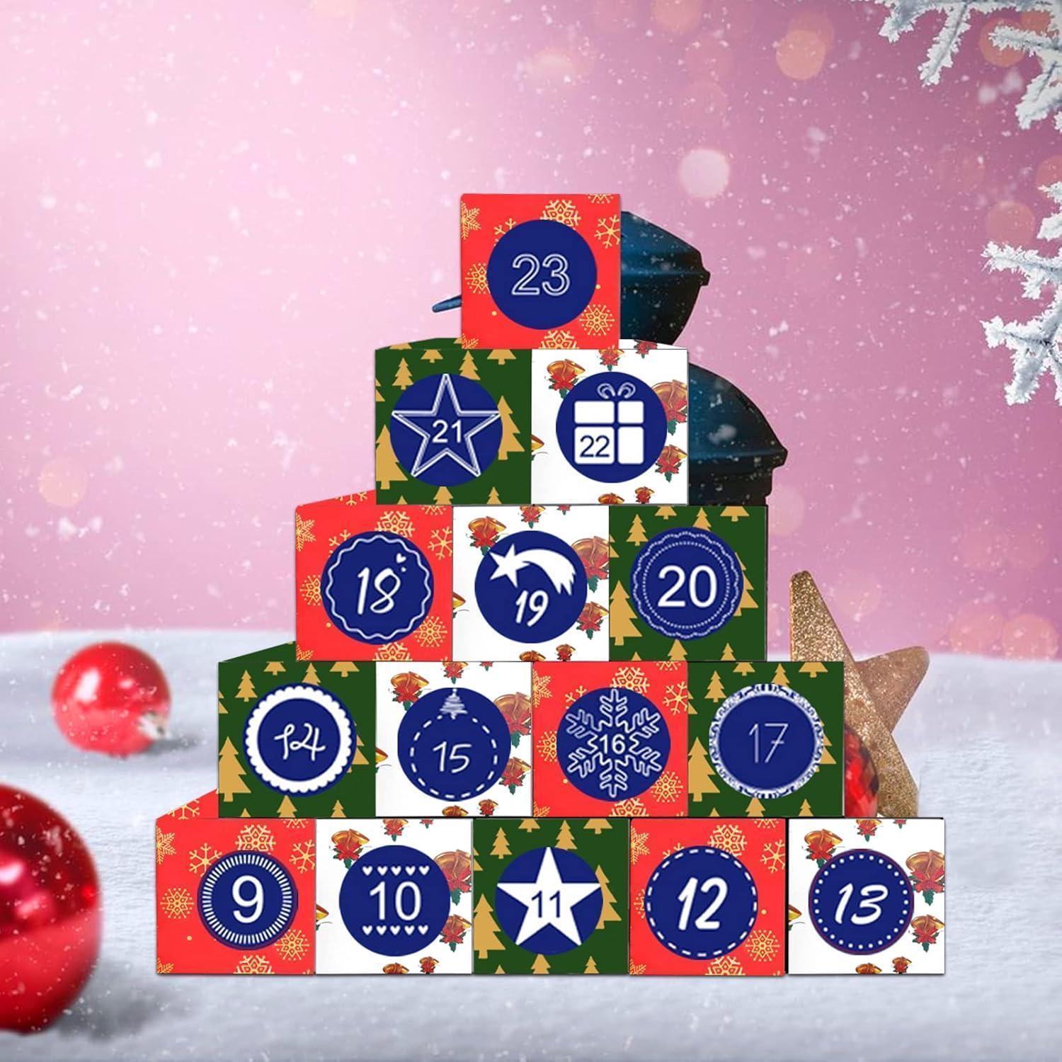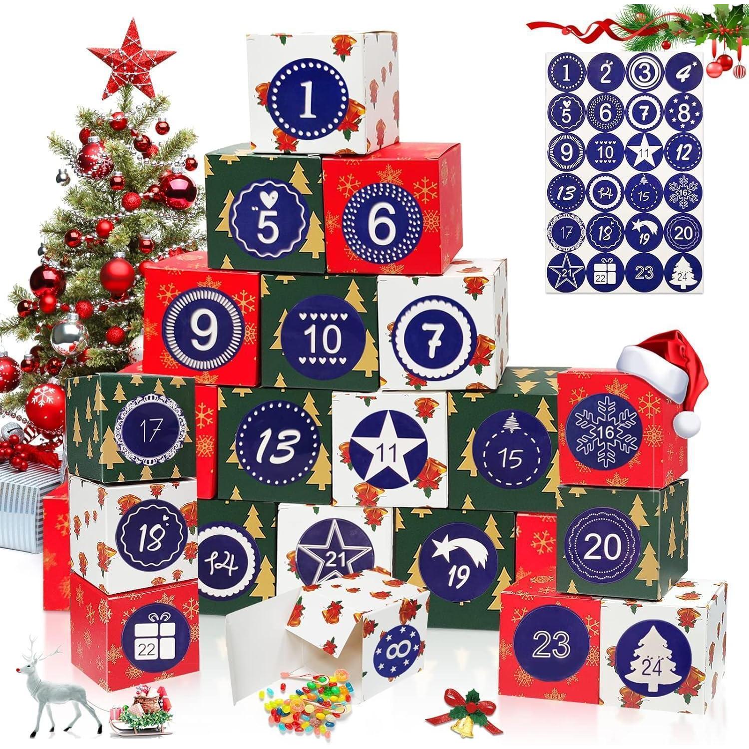Geschenkbox zum Verpacken: Mit 24 Weihnachts-Countdown-Geschenkboxen können Sie Weihnachtsgeschenke für Ihre Familie oder Freunde verpacken. Sie können kleine Snacks, kleine Accessoires, kleine Spielsachen usw. unterbringen. Die Geschenkbox ist blickdicht, was eine angenehme Überraschung garantiert.