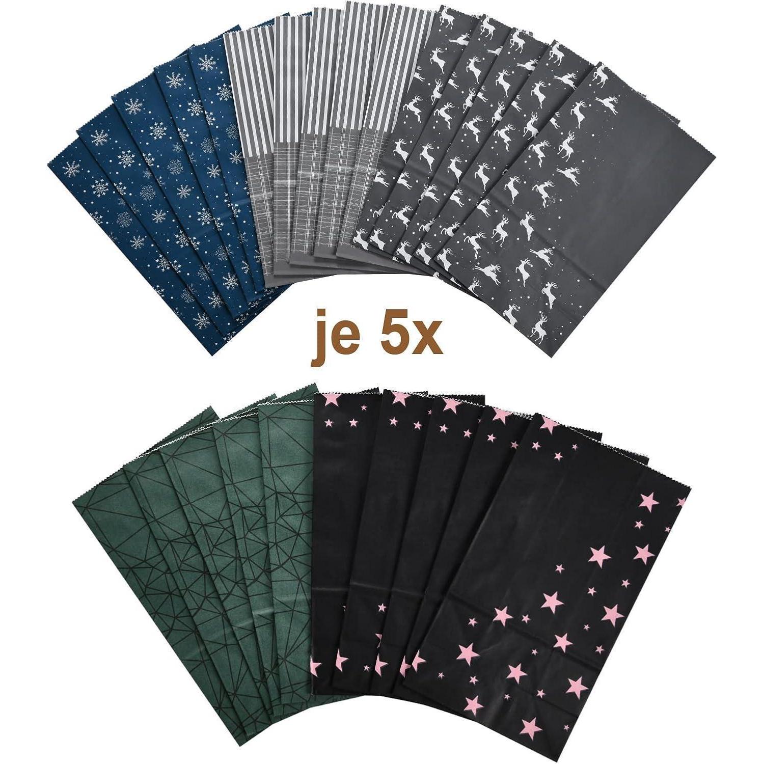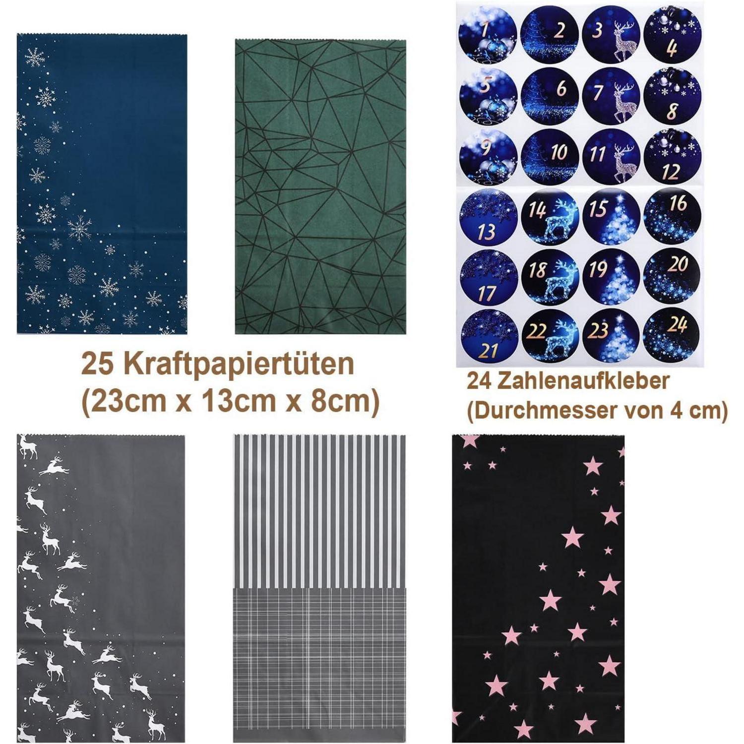 Adventskalender zum Befüllen 24 Kraftpapiertüten Blau Grau