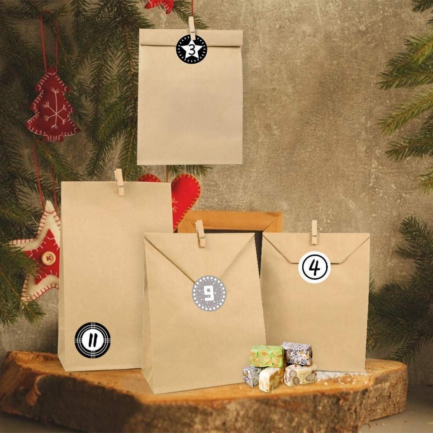 Adventskalender zum Befüllen, 24 Kraftpapiertüten Schwarz